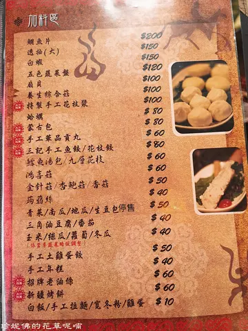 Healthy Hot Pot / 手工花枝漿 / 火鍋 料 / 老油條 / 豆腐紙 / 紅鍋 / 蛋餃 / 麻辣鴨血 / 湯好喝 / 湯頭超讚 / 湯頭讚 / 新疆烤餅 / 蜂蜜醋 / 蒙古酒 / 安格斯霜降牛 / 羔羊羊肩肉