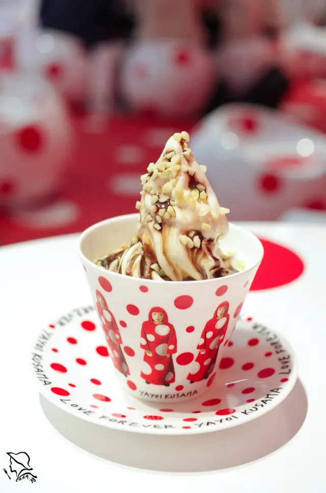 草間彌生,當代經典藝術家善用高彩度對比圓點做為創作基礎並將其大量包覆在各種物體上這些創作可以說是她為了對抗本身精神疾病下的產物她十歲就患了神經性視聽障礙,使她眼裡看到的世界怖滿了幻覺為了對抗疾病,她不停地創作,將她的感受和恐懼呈現在藝術上以求得生存的安全感!因此,大量圓點無限延伸… 這,就是草間風格!南瓜為草間彌生經典代表作之一而現在,喜歡草間彌生的朋友有福了!!草間彌生亞洲巡迴展台灣站,相繼在高雄、台中展出雖然台北並沒有在設展的計劃中但在華山藝文中心,開設了間<期間限定>咖啡館與其說是咖啡館,不如說是闢了個草間風格的空間讓喜愛她的朋友在此品嚐下午茶,也同時展售一些相關產品其點心和飲品是盧湛代為提供看到這怖滿紅白點點的背景和桌椅,心都融化了~ 好可愛啊!整個用餐空間都被點點包圍,有密集恐懼症的人應該會崩潰!! 哈哈大概有30多個座位左右~採自由入席!看到座位自行入席後,再前往櫃台點餐,叫號領取餐點牆上展了四幅風格顯明的作品一旁展售些相關產品; 有文具、手袋、著作…等。 喜歡的朋友可以趕快買回家!連點餐的menu看板也充滿著紅白點點提供的飲品和點心種類不多~尤其是甜點櫃… 也太空虛了… (1:00PM不是下午茶正熱鬧的時侯嗎?)Josie之前看新聞聽說有好可愛的風格限定的南瓜造型蛋糕經過詢問之後,店員表示那是在記者會上提供的,之後他們會陸續研發新產品所以之後去的朋友可能就會看到特別造型的糕點囉~杯子都是日本限量進口的,打破可是要照價賠償呢!! (一整場都好擔心小Abbie手滑打破! XDD)其實這頓下午茶是小Abbie貢獻出她的小撲滿要請我吃的母親節下午茶問她母親節要到了欸! 要請我吃大餐嗎?看著她四歲小小身軀咚咚咚跑進房間拿出撲滿說: 沒問題~站在她身後的我覺得這小妞真的長大了!不過,是說… 搖了搖撲滿…粗估一下金額平常也沒給她零用錢,撲滿裡的零錢也是她從媽媽我的零錢盒挖出來投進去的(喂~)大概只能吃一頓"簡單的"下午茶了! XDD我點了一杯榛果拿鐵($95)和冰淇淋($80)連咖啡也加入了點點元素 覺得自拍控在這裡一定能拍的很開心!! 哈哈哈在充滿點點的空間中,覺得怎麼拍都夢幻耶~ 喜歡草間風格的朋友,千萬不要錯過這難得的機會囉!吃完下午茶,還可以帶著寶貝到園區內的草地跑跳、玩耍喲~最後獻上四歲小Abbie園區內自拍的照片… 哈哈------------------------------…查看更多