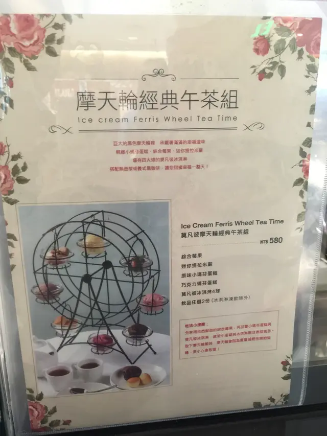 到了店門口之後看到琳瑯滿目的冰淇淋口味, 一下子還真的不知道該怎麼選才好, 於是請服務人員和我們介紹一下!服務人員很有耐心的跟我們介紹, 並讓我們試吃各種口味, 包含了新口味的香草布朗尼, 瑞士舒芙蕾等等。因為摩天輪下午茶可以選4種冰淇淋口味, 所以我們最後決定選擇兩種較清爽的口味, 分別是芒果和杏桃雪酪, 另外兩個則是最愛的巧克力口味還有香草布郎尼 吃完了4種不同口味的冰淇淋, 說真的, 還是最愛巧克力口味, 濃郁的巧克力香, 真是令人無法抗拒啊!不過, 芒果口味的也還算不錯, 吃起來感覺滿清爽的, 而杏桃雪酪第一口吃下去還不錯, 但吃到後來覺得有點死甜, 就沒有很愛!飲料的部分, 果汁喝起來水水的, 茶的表現非常的普通, 有點失望...整體來說, 就是摩天輪的造型最吸引人, 冰淇淋的部分表現一般, 而莫凡彼在新光A8的用餐環境也讓人覺得壓迫, 建議還是外帶冰淇淋吃就好!…查看更多