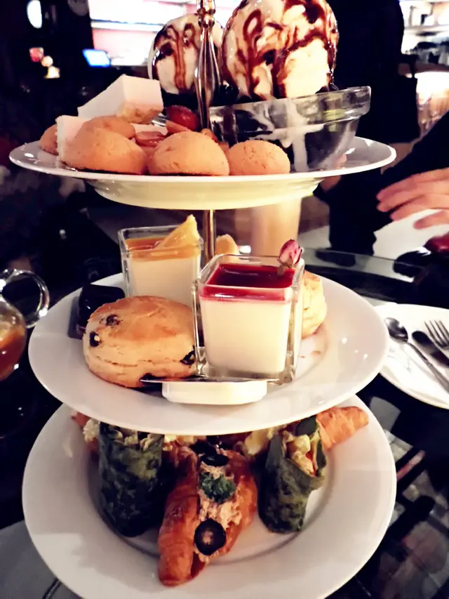 在周末的午后,和好友齊聚來一場悠閒溫馨的午后時光,是最棒的選擇!難得有那樣的機會,約了許多沒一起聚餐的Bonnie,享受美好的周末之約。莫拉諾就在頂好商店城後面的巷子,從店外看進去滿屋子的彩繪玻璃,黃澄澄的色調有一種溫暖的感覺。店裡主打輕食下午茶還有義大利麵等歐式風味餐。 店裡店外都有這種漂亮的馬賽克鑲嵌玻璃藝品,據說都是MIT台灣製的。 迎賓櫃台店內的餐桌上和天花板上的燈飾也都是一樣的絢爛,營造出歐洲古典咖啡店的風格。我們後來就被安排到這個四人的座位,空間非常大,坐起來很舒服。店內的座位頗多,空間也挺寬廣的,玻璃桌子搭配緹花木質座椅,強調華麗的質感。 玻璃桌面底下同樣是彩繪玻璃搭配著燈光,這是一般咖啡店較少用的風格。 在每一處的佈置上和座位的安排,都還有些不同的巧思。 牆上的彩繪玻璃壁畫則是由外而內,以春、夏、秋等季節設計,但為何會少了「冬」呢?原來是店內的空間不夠,我想以後可能要換更大一點的空間才足夠應付。 這樣的燈飾,真的營造出一種貴族氣息,讓人彷彿走進歐洲古典咖啡店,來品味一場特別的盛宴。 旁邊還有一個酒架,擺放了幾款酒類。 看看菜單,拍到的主要是以輕食及下午茶的部份,選擇種類像是早午餐、三明治、鬆餅、帕尼尼等等,看到隔壁桌點的三明治好大一份,豐富可口,讓人口水都快滴下來。 我們要體驗的是雙人英式下午茶,飲料的部份可選擇美式咖啡、冰釀咖啡、經典紅茶、鮮奶茶、水果、拿鐵,還有每日精選等種類。 我們選了一份熱水果茶,茶味蠻濃的,而且不會太甜,裡面也有不少的新鮮水果切片。 我選的是每日精選「皇后煎茶」,茶的味道溫潤不苦澀,入喉還有些淡淡的清香,搭配下午茶的各式甜點剛剛好。 接下來送上的則是讓人引頸期朌,華麗的英式三層下午茶,一送上桌我眼睛和嘴巴都睜大,發出讚嘆的聲音,這下午茶的內容也太豐盛了,而且整個看上去,有甜有鹹,而且散發出迷人色澤,這誰看了不心動,不想立馬伸手去拿個點心來吃。 最上層的是草莓起士冰淇淋布朗尼,我愛死這冰淇淋的味道了,怎麼會那麼好吃!草莓微酸又香甜的口感,讓我第一口吃到就中了!XDDD,而底層舖的巧克力布朗尼,雖然不是我鍾愛的微濕口感,但巧克力香濃的味道有讓人得到滿足! 另一款則是法式焦糖堅果塔,不過外觀看起來像起士條,吃起來清爽又綿密,底層的塔皮很酥,輕輕一弄就散開來,我們都好喜歡這個味道。 中間這層放的是蔓越莓和芒果奶酪,還有司康及二種口味的手工餅乾。司康一直是我不太喜歡吃的英式點心,總覺得很乾也沒什麼味道,這次我塗上了一些奶油入口,就覺得比較好吃,Bonnie還把奶油及果醬一起塗抹,讓我很好奇這樣的口感會是什麼滋味! 另一邊則有檸香瑪德蓮蛋糕。 最下層是翠綠的墨西哥火腿生菜捲餅,還有鮪魚沙拉、蛋沙拉二種口味的小可頌。 美食當前必要的合照~呵呵 櫻桃起司派,這個派的上層舖上了鮮紅慾滴的櫻桃,吃起來滿口芳香,而中間的起司蛋糕綿密細滑,在嘴裡久久不散的香濃口感,深得我心! 小可頌有蛋沙拉和鮪魚沙拉二種口味,上頭有橄欖的是鮪魚沙拉,鮪魚肉頗為細緻,加入美乃滋混合,巧妙的把鮪魚肉口感上變的更加滑順好入口。 蛋沙拉更是香濃可口,讓人吃在嘴裡有說不出的幸福感!就那麼一個簡單的東西,也可以讓人消魂。而可頌麵包並不會因為是冷的而口感變差,依然保有鬆軟度,和內饀搭配一起食用,真的好好吃! 另一樣讓我十分驚喜的是翠綠色的墨西哥火腿生菜捲餅,顏色紅紅綠綠看起來就超誘人食慾,裡面除了火腿生菜外,還有起司和大黃瓜包在一起,一口咬下Q軟餅皮包著爽脆生菜,口口都是滿足!這個好味道讓我可以在多吃一些都沒問題,我超級喜歡這個鹹點。 在來就是檸香瑪德蓮蛋糕了,不過這個只有一個,吃起來是有檸檬的香氣,但蛋糕略乾,口感就沒特別驚喜。 酸甜蔓越莓和夏日芒果奶酪,二種都是常見的口味,上頭的果醬應該不是天然的,若能增加一些果肉,感覺會更天然。 莫拉諾歐風精品咖啡,環境讓人感覺到古典有深度的氣質,而下午茶的部份,味道也讓我很滿意,意外發現這家不錯的咖啡店,我看別人吃的義大利麵和三明治都很可口的樣子,我也很好奇,想吃吃看是否讓人驚艷,總結這是一家會讓我想在回訪的店,也介紹給大家。…查看更多