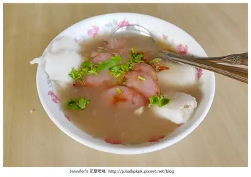 若不是在東港輔英醫院產檢也不會有這麼多的時間到這裡來到東港當然要Google一下當地的美食發現東港也有三寶,肉粿就是其中之一啦!!!這次就先來嚐嚐這個當地人也愛吃的葉記肉粿吧!其實還有一間林記肉粿也相當有名,下回再來品嘗林記肉粿比較特別的是有多賣一樣,就是「乾的肉粿」不同於這種淋上虱目魚加碎肉熬煮淋上羹湯製成的 其實來葉記肉粿會先經過林記肉粿我們都在猶豫到底要先吃哪一間不過最後還是決定先吃葉記好了 這天已經是下午兩點多了店裡面還是滿多客人內用、外帶的看的出來滿多都是當地人大家都和老闆娘閒話家常的,呵呵 中間這一大片白白的就是等一會兒要入口的粿旁邊還有紅紅又薄薄的香腸切片及一些蝦猴印象中好像還有一些肉片 桌上的三種醬汁蒜汁、辣油、辣椒醬〈如果有錯還請大家指正喔! 感恩〉 葉記肉粿有賣三種Size,分別是大碗50元、中碗40元、小碗30元這是我點的小碗,其實感覺分量不會很少一個女生吃來也會飽呢! 中碗40元碗裡會附一支湯匙和一支叉子 這個白白的粿口感真的滿不錯的據說粿是用在來米小火慢炊8小時軟軟綿綿的,雖然粿本身沒有味道但是配上香腸、蝦猴、香菜等配料一起入口那個味道真棒加上羹湯是用大骨、虱目魚和其他秘方一起熬煮,最後淋上米漿勾芡整個吃起來滿鮮甜的,味道真的挺搭的讓我有點後悔點小碗的,哈哈肉粿中的每一樣配料都缺一不可少了任何一樣味道就不對了,哈哈大家有機會到東港也可以來嚐嚐這樣的奇妙組合唷!下回有機會再去嚐嚐林記肉粿,風評也滿不錯的呢!葉記肉粿地址:屏東縣東港鎮光復路154號電話:08-8329218營業時間:09:00至賣完為止…查看更多