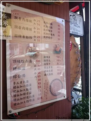 豬血 小腸湯 肉燥飯 / 豬血大腸湯 / 豬血湯 炒米粉 / 豬血綜合湯 / 飄香肉燥飯 瘦肥