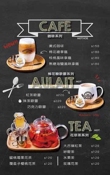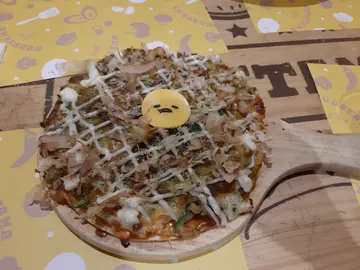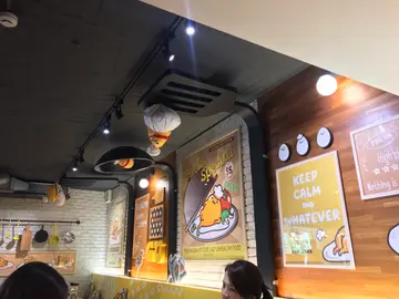 Gudetama Chef-蛋黃哥五星主廚餐廳開幕於去年10月份,地點位在SOGO敦化店旁,搭捷運至忠孝敦化站走地下街12號出口就可看到。其實檸檬在開幕後的第二個月就去插旗了,但因為蛋黃哥主題餐廳的照片實在太多了,再加上檸檬的性格其實跟蛋黃哥一樣懶洋洋的,所以一直拖到現在才將食記整理出來分享給大家▲在外觀裝潢上除了有吊在牆壁上非常醒目的蛋黃哥之外,玻璃展示櫥窗中,還展示蛋黃哥的廚師衣服和廚房道具▲門口設有候位區及傘架▲這隻是守候在大門口的蛋黃哥公仔,躺在咖啡杯上還拿著鍋鏟,想必是做菜做到累翻了吧!! ▲進入餐廳第一眼就看到五星級主廚蛋黃哥拿著鍋鏟迎接著大家,當然~來到這一定要跟蛋黃哥主廚合影留念一下嘛!! ▲MENU上的選擇性很多,有義式、日式、美式等多國選擇,價格在$120~$480之間,每人低消$200(110cm以下免低消),用餐時間為90分鐘奶油玉米濃湯$120玉米濃湯上還附上兩片可愛的烤蛋黃哥吐司,濃湯的表現就相當的普通雲朵山賊雞披薩$280 ▲店員相當貼心,會等食客們拍照完,再拿去廚房分切,只不過分切完後回來,原本上面的蛋黃哥就不知蹤影了,所以檸檬也不太曉得上面那一片蛋黃造型能不能吃,或著是甚麼味道▲雲朵山賊雞披薩,上面是打發的蛋白霜,本身沒甚麼味道,口感相當蓬鬆稍微帶點彈性,但入口後沒幾秒又宛如泡沫般在嘴裡慢慢化掉,底部所使用的是較薄的披薩皮,口感稍微偏硬相似於餅乾,披薩皮上所使用的醬料為日式山賊醬(早期日本廣島、山口縣一帶,山中盜賊會將肉品用鹽、黑胡椒與大蒜等佐料醃漬保存,這種豪爽的黑胡椒醬調味方式,被稱為「山賊醬」_並加入雞肉、甜椒、洋蔥...等時蔬。雖說上頭的蛋白霜本身無味,但因加了非常重味的山賊醬,所以搭配起來味道上顯得十分剛好。酥硬的餅皮與蓬鬆的蛋白霜這兩種截然不同的口感,組合起來竟有說不上來的微妙,算是新奇又創意的一道料理,還滿推薦大家嚐試看看。 總匯海鮮PIZZA$280所使用的配料有蝦子、花枝、花椰菜、番茄、洋蔥加上牽絲的起司,底層的餅皮一樣是使用口感偏酥硬的薄皮披薩,整體口味偏淡,甚至可說接近原味 溫泉蛋墨魚麵$280溫泉蛋上使用的是糯米紙點綴眼睛、嘴巴的模樣,使用的配料有蝦子、魚片、玉米筍、蛤犡、花椰菜,麵條上的醬汁有一種類似美極鮮味露的味道,溫泉蛋拌入麵條後,整體風味就稍嫌偏淡了些。 奶油鮭魚飯$320奶油鮭魚飯上桌時,會另外附上一碗白醬,米飯的顏色是用薑黃染色,吃起來並沒有太特別的味道,一旁還有新鮮沙拉、油醋醬、香煎鮭魚,吃的時候可將白醬及鮭魚混入飯中一起食用,但白醬味道似乎與飯不是這麼的搭,讓人勾不起吃米飯的味蕾。 馬卡龍米漢堡$280除了小巧可愛的馬卡龍米漢堡外,還附上一籃的炸薯條,薯條表現還算不錯,炸的香酥不油▲蝦排米漢堡裏頭加了生菜葉、番茄、起司片,另外還用泰式酸辣醬混美乃滋,吃起來還算不錯▲漢堡肉米漢堡,一樣有添加生菜葉、番茄、起司片,不過使用的醬料是蜂蜜芥末美乃滋▲培根肉米漢堡,所使用的配料一樣,醬料就只是單純的美乃滋醬▲馬卡龍米漢堡上的主廚帽其實是一根固定食材的牙籤蛋黃哥鳥巢雞蛋糕$160使用牛蒡絲作為鳥巢鋪底,上頭的雞蛋糕造型都相當可愛,至於味道和口感嘛!!其實檸檬並未食用,當天同桌有2位嗷嗷待哺的小朋友,看到雞蛋糕就興奮不已,不一會兒就被他們倆給吃光了彩色水果冰沙$260這是飲品中唯一可帶回的瓶子,所以幾乎來訪的顧客都會點這冰沙來喝,從照片中會以為這瓶子是玻璃做的,實際上只是個塑膠瓶而已。冰沙部分使用了百香果、蔓越莓、藍柑橘所組成,甜度和香氣十分的淡,有種再喝冰沙水的感覺。 巧克力鮮奶冰沙$240巧克力冰沙上擠上一坨鮮奶油,再加上蛋黃哥造型冰乾、蝴蝶餅乾、巧克力、巧克力夾心餅乾。杯子邊緣是以花生醬去沾附巧克力碎粉冰沙部分使用的是巧克力鮮奶,所以可可味不是很濃,且甜度也稍淡 棉花糖拿鐵$180原本以為蛋黃哥圖案的棉花糖丟進拿鐵裡會融化,結果攪拌了好久好久,那棉花糖都沒有融耶!!根本無法跟拿鐵合為一體嘛!!▲棉花糖部分咬開後,裡頭還包有巧克力餡,不過那巧克力的味道有點類似小時候吃的金幣巧克力,可可味不是這麼純的那種…查看更多