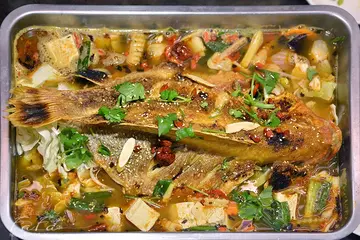 蜀江宅院距離捷運國父紀念館站2號出口大約3分鐘路程,這條街上有不少餐廳,如果想要嘗試中式合菜類型又是老四川風格偏辣偏重口味的可以考慮,這邊的特色蜀川料理大概就屬烤全魚這項,有八種烹調方式,重慶麻辣(辣味重)、成都麻辣(辣味適中)、万州泡椒(辣而不燥)、巫山魚香(傳統川菜)、三峽豆薣(清香)、宜賓怪味(酸甜麻辣)、泡椒豆薣(微酸清香),整隻魚搭配豐富酌料上桌頗為壯觀。蜀江宅院將店面營造的很有氣氛,仿佛讓人置身在古裝劇中,來往的人潮免不了都會往內瞧幾眼。入座後送上溫熱普洱茶及小菜。點MENU圖片可放大蒼蠅頭 NT$220我個人蠻喜歡韭菜花份量多,青綠亮色顏色好看,香辣爽脆的口感搭配白飯更是一口接一口,有一點油不過不會讓人不舒服。老皮嫩肉 NT$220雞蛋豆腐個個金黃方正,吃之前先把下方醬汁瀝乾便沒那麼油,外皮不太脆,內部柔嫩口感就像柔滑的蒸蛋一樣,個人還是比較喜歡KIKI 成都川味名菜的老皮嫩肉。季節時蔬-空心菜(宮保) NT$180可選擇宮保、腐乳、清炒三選一烹調方式,這盤空心菜口感老了些,宮保味道也不夠突顯。辣子雞丁 NT$300這盤的份量並不多,尤其還要價NT$300讓人覺得有些不值,雞丁口感軟嫩多汁還不錯,只是那醬汁味道像蚵仔煎有點妙,常見的涼拌鋸齒狀小黃瓜在這邊出現更是妙。成都香辣 鱸魚 NT$980、紅魚(赤鰭笛鯛) NT$880、鯛魚 NT$780 (任選一種)裏頭酌料豐富,黃豆芽、高麗菜、黑木耳、蒟蒻卷、凍豆腐、枸杞、紅棗、香菜以及秘製辛香料等食材,我們選擇了小辣,怕辣的我不會覺得受不了,喜好辣味的人便會覺得沒味道,就是一點辣味的清燉湯,魚肉軟嫩口感不錯,沒有土腥味。重慶雞公煲 NT$580將洋蔥、蒜苗、無骨雞腿肉炒過後再放入陶鍋悶熱送上,雞肉軟嫩帶有嚼勁,有適量的紹興酒提香。剩下的醬汁可加入高湯變成一道公煲火鍋湯料理,店員會將卡式瓦斯爐搬來直接熬煮,接著飄來陣陣香味,雖說湯底油亮似乎很嚇人,但喝了幾口還不錯,不過我還是沒辦法喝完一碗。接著會附上濕紙巾,甜湯-紅豆湯及涼糖為口中去膩,頗貼心。 …Read More