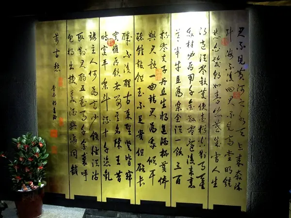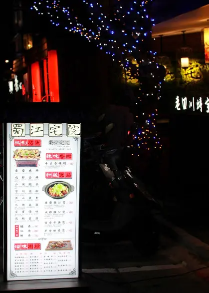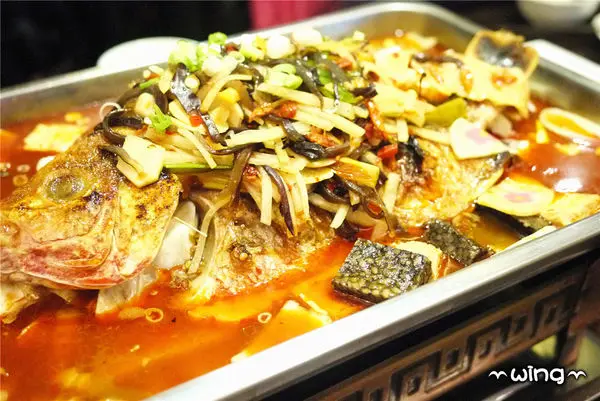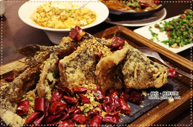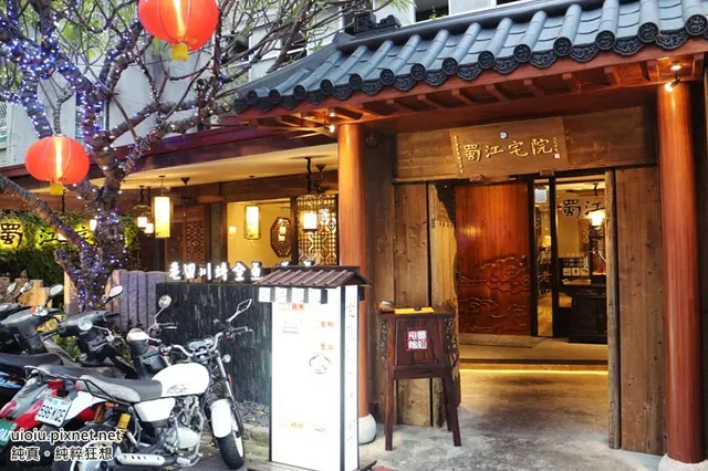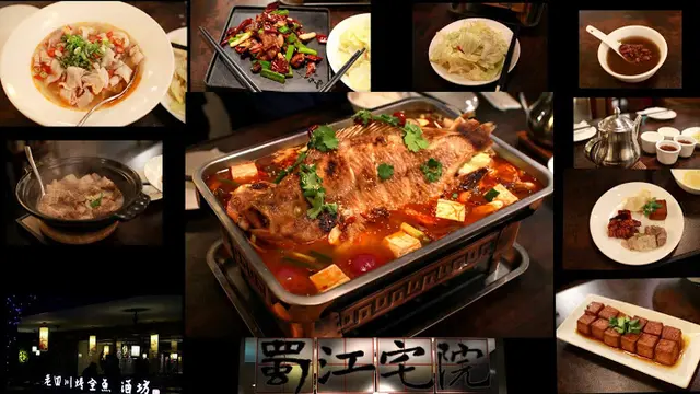 蜀江宅院距離捷運國父紀念館站2號出口大約3分鐘路程,這條街上有不少餐廳,如果想要嘗試中式合菜類型又是老四川風格偏辣偏重口味的可以考慮,這邊的特色蜀川料理大概就屬烤全魚這項,有八種烹調方式,重慶麻辣(辣味重)、成都麻辣(辣味適中)、万州泡椒(辣而不燥)、巫山魚香(傳統川菜)、三峽豆薣(清香)、宜賓怪味(酸甜麻辣)、泡椒豆薣(微酸清香),整隻魚搭配豐富酌料上桌頗為壯觀。蜀江宅院將店面營造的很有氣氛,仿佛讓人置身在古裝劇中,來往的人潮免不了都會往內瞧幾眼。入座後送上溫熱普洱茶及小菜。點MENU圖片可放大蒼蠅頭 NT$220我個人蠻喜歡韭菜花份量多,青綠亮色顏色好看,香辣爽脆的口感搭配白飯更是一口接一口,有一點油不過不會讓人不舒服。老皮嫩肉 NT$220雞蛋豆腐個個金黃方正,吃之前先把下方醬汁瀝乾便沒那麼油,外皮不太脆,內部柔嫩口感就像柔滑的蒸蛋一樣,個人還是比較喜歡KIKI 成都川味名菜的老皮嫩肉。季節時蔬-空心菜(宮保) NT$180可選擇宮保、腐乳、清炒三選一烹調方式,這盤空心菜口感老了些,宮保味道也不夠突顯。辣子雞丁 NT$300這盤的份量並不多,尤其還要價NT$300讓人覺得有些不值,雞丁口感軟嫩多汁還不錯,只是那醬汁味道像蚵仔煎有點妙,常見的涼拌鋸齒狀小黃瓜在這邊出現更是妙。成都香辣 鱸魚 NT$980、紅魚(赤鰭笛鯛) NT$880、鯛魚 NT$780 (任選一種)裏頭酌料豐富,黃豆芽、高麗菜、黑木耳、蒟蒻卷、凍豆腐、枸杞、紅棗、香菜以及秘製辛香料等食材,我們選擇了小辣,怕辣的我不會覺得受不了,喜好辣味的人便會覺得沒味道,就是一點辣味的清燉湯,魚肉軟嫩口感不錯,沒有土腥味。重慶雞公煲 NT$580將洋蔥、蒜苗、無骨雞腿肉炒過後再放入陶鍋悶熱送上,雞肉軟嫩帶有嚼勁,有適量的紹興酒提香。剩下的醬汁可加入高湯變成一道公煲火鍋湯料理,店員會將卡式瓦斯爐搬來直接熬煮,接著飄來陣陣香味,雖說湯底油亮似乎很嚇人,但喝了幾口還不錯,不過我還是沒辦法喝完一碗。接著會附上濕紙巾,甜湯-紅豆湯及涼糖為口中去膩,頗貼心。 …查看更多