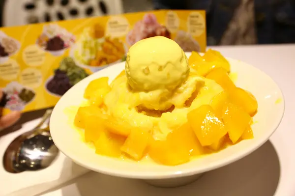 【西門町芒果冰】西門町冰戰生力軍!大碗公雪花冰重質又重量 開朗少女等級42014-05-1351 瀏覽 關注 擋不住的夏日暑氣,走在西門町的路上隨時都會爆汗,在西門町走跳七八年有了,甚麼時候多了這家西門町芒果冰(? 抬頭一瞄~露天座位讓我不經揉眼睛!這是澳門嗎?蠻有異國風情的設計,看了價格並不貴所以進來避暑啦! 店內有一二樓,推薦大家做二樓,座位更寬敞。如果和開朗一樣是假日造訪,由於排隊人客眾多,一定要請同行友人佔位置先呀! 看到由衛生署所核發的檢驗合格公文。 點完餐後拿著號碼牌,就可以上二樓啦! 可以選擇露天座位、吧檯或是對桌 餐車會從一樓廚房送雪花冰上來,再由服務人員叫號,直接揮揮手就會將冰送到桌上 西門町芒果冰有數十種冰品,其中大珠小珠落玉盤的玉米雪花冰讓我心動卻不敢行動,於是先點了宇治抹茶紅豆雪花冰 180元 開朗測量器S3再次出動!瞧瞧這冰是不是直徑驚人! 以碗盆畫圓對切,一半放上綿密飽滿的萬丹紅豆,另一半則是擁有雋永茶運的抹茶雪花冰,再躺上一大球~札實、茶香濃厚,溫順不膩的抹茶冰淇淋! 以甜度來說,抹茶冰淇淋>抹茶雪花冰 原本擔心分量超大的粒粒分明紅豆,會讓我們吃到大喊求饒...沒想到一口紅豆一口雪花冰,入口即化的抹茶雪花冰和微溫萬丹紅豆簡直像星巴克新推出抹茶紅豆星冰樂,真是絕妙拍檔! 這樣稀哩呼嚕~竟然就把碗公級抹茶紅豆雪花冰給嗑完了! 有點意猶未盡,才想到來號稱西門町芒果冰,怎能不嚐嚐他們的芒果冰系列呢!愛相隨 180元 在開朗觀念裡,其實你在不同時候吃的芒果雪花冰,應該會有不同的味道!因為由水果製成的冰品,應該會依照品種和熟成度有所差異,如果一年四季味道都不變,應該是有添加...XD 在芒菓園翻滾長大的我,胖長形的芒果較酸、果肉偏橘紅的較甜,這是我的小小心得!這家算是我吃過全台北最好吃!最鮮甜的芒果冰了!尤其是超大一球的芒果冰淇淋還吃得到芒果粒(大心) 下次還想來~想試試看可愛戀人喔!在非草莓季如何做出可口雪花冰?!是不是超好奇的呀~~~…查看更多+ 15以上食記乃用戶個人意見,並不代表OpenRice之觀點。讚好分享【西門町芒果冰】西門町冰戰生力軍!大碗公雪花冰重質又重量 西門町芒菓冰 https://s.openrice.com/cHRTm02gXi000檢舉 張貼 評分4味道3環境3服務3衛生4CP值用餐日期2013-08-10用餐方式內用