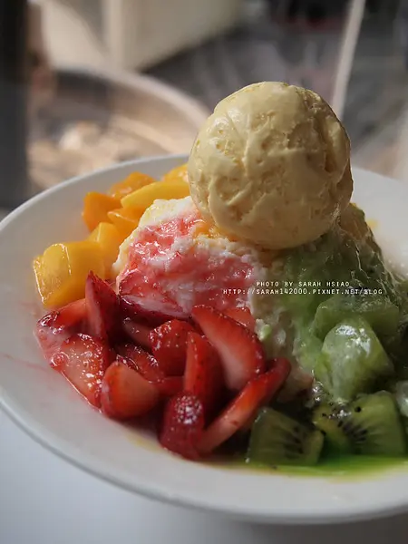 【西門町芒菓冰】期間限定!土芒果雪花冰 錯過再等一年! 貝果汪汪等級32013-07-2491 瀏覽 關注 (此篇食記為免費體驗)夏天的台北真的熱翻了,在西門町街頭感覺都快要被蒸發了,模糊的視線隱約看到都市叢林中出現了綠洲...原來是西門町芒菓冰,夏天最幸福的事,莫過於久旱逢甘霖了!如果沒時間坐下來細細品嘗雪花冰,外帶冰涼的果汁或點兩球冰淇淋邊逛西門町邊吃也是個不錯的選擇。假日呈現了客滿排隊的狀態,好在翻桌率夠高,幾乎不用等候就可以找到位置,我花了五秒鐘研究觀察發現,客群中有許多是慕名而來的觀光客。採取先付款結帳,然後牢記你的號碼,然後就可以回到座位上吹冷氣玩手機稍後片刻。一共有兩層樓,二樓的座位數更多空間也更寬廣喔。桌椅簡單卻有設計感,木質地板配上綠色系的裝潢,彷彿身在森林裡面自在放鬆。這邊有個芒果冰專用的餐梯,芒果冰一路從一樓送上來後,服務生再大聲叫號,你只需要帥氣的揮個手即可。大片的落地窗採光自然就有明亮的環境,如果吃像不會太差你可以選擇坐在窗邊享受陽光、觀賞熙來攘往的街景。西門町芒菓冰不會為了塞更多桌椅而犧牲掉應該要有的舒適用餐空間。戶外有造景和幾組座位,但是大熱天的大家都很聰明XDD茶韻飄香-宇治抹茶紅豆雪花冰(180元)上面的抹茶冰淇淋是店家從日本進口宇治抹茶粉製成的,吃起來只有微甜且茶味濃厚,搭配台灣本土的萬丹紅豆,跟DM上的圖片一樣,豪邁的給了大半碗不縮水,台日合併的無敵組合。忍著口乾舌燥,一拍完照趕緊扒了一大口消暑,字典裡恐怕是找不到詞彙形容這種感覺,我想這就是所謂的「熱情的沙漠碰到三月的小雨」吧!飽滿鬆軟的紅豆,一碗吃下來也頗有飽足感。愛相隨-獨家芒果冰(180元)疑~不是應該點上面有整顆土芒果的「意難忘」嗎?原來那是每年3月15日到6月15日季節限定販售的,限時比限量還要殘酷,我還以為只是當天完售,錯過只好再等一年!(淚奔)芒果口味的雪花冰淋上純天然土芒果醬,舖上滿滿的愛文芒果切塊,最後放上一球冰淇淋壓頂,這麼彭湃的組合,光看都已經消暑退火,喜歡芒果的你不要錯過了。味蕾會說話,真材實料的食材製作的芒果冰,吃完不會覺得過甜過膩,也不會越吃越渴。這次點的兩種口味都算是熱門款,另外下次來想要試試比較冷門的榴槤雪花冰和玉米雪花冰。…查看更多+ 4以上食記乃用戶個人意見,並不代表OpenRice之觀點。1分享【西門町芒菓冰】期間限定!土芒果雪花冰 錯過再等一年! 西門町芒菓冰 https://s.openrice.com/cHRTm02H00000檢舉 張貼 評分4味道4環境4服務4衛生4CP值推薦菜茶韻飄香-宇治抹茶紅豆雪花冰NT$180茶韻飄香-宇治抹茶紅豆雪花冰NT$180愛相隨-獨家芒果冰NT$180愛相隨-獨家芒果冰NT$180宇治抹茶紅豆雪花冰用餐日期2013-07-20用餐方式內用