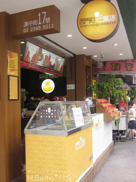 (邀約)西門町‧西門芒果冰(非常澎拜的鮮果芒果冰) 臭臉任等級42014-12-0962 瀏覽 關注 西門町芒菓冰位於漢中街和漢口街交叉口為最近新開的芒果冰 (店外擺設,很芒果)(外帶區,目前有提供冰淇淋和飲料外帶)(這顆大金芒果是拿來生財的吧)這裡的特色是醬汁為純天然的土芒果做成,不加糖芒果也是用台灣在地的土芒果是非常有台灣味的冰店店有一樓跟二樓二樓有個小戶外區環境明亮空間非常大,用餐環境很舒適且非常乾淨點餐區工作人員衛生做的非常好幾乎一有空位就有人進來,生意非常好有許多學生,整個很有年輕人的朝氣果然在這種大熱天就是要進來吹冷氣吃冰啊!!!(這間店的初衷)Menu提供雪花冰,冰淇淋,鬆餅,果汁和咖啡原本想點意難忘但是因為只供應4~6月後來點了愛相隨跟鮮果爭輝餐點部分愛相隨180綿密的雪花冰上面佐一球芒果冰淇淋,再淋上現打的土芒果汁芒果切塊非常多非常有誠意,酸甜感恰到好處上面的芒果冰淇淋味道有些許不同口感較為綿密濃郁,裡面有芒果顆粒芒果汁和煉乳的組合真的令人愛不釋手鮮果爭輝200一上來就非常吸睛不管是在色澤搭配和味覺口感上都很棒新鮮芒果切塊配上芒果汁草莓切塊配上草莓汁奇異果切塊配上奇異果汁想不流口水都難 三種果汁再淋上煉乳上面佐以芒果冰淇淋,配上綿密的雪花冰不得不稱讚這道甜品把芒果的甜跟奇異果和草莓的酸配合的恰到好處店內一景臭臉任不負責講評:這裡不管是用餐環境和空間大小都非常乾淨舒適,不像一般的冰店有蒼蠅或者座位狹小廚房跟服務員的衛生也做得很好土芒果的品質優,酸甜口感恰到好處冰品的水果也完全都是真材實料並且附上一球冰淇淋,誠意十足是去那邊逛街找地方休息的好選擇店名:西門町芒菓冰地址:台北市萬華區漢中街17號電話:02 2388 8511營業時間:週一 - 週日: 10:00 - 23:00 …查看更多+ 24以上食記乃用戶個人意見,並不代表OpenRice之觀點。讚好分享(邀約)西門町‧西門芒果冰(非常澎拜的鮮果芒果冰) 西門町芒菓冰 https://s.openrice.com/cHRTm023ai000檢舉 張貼 評分5味道5環境5服務5衛生5CP值用餐方式內用用餐優惠試吃活動
