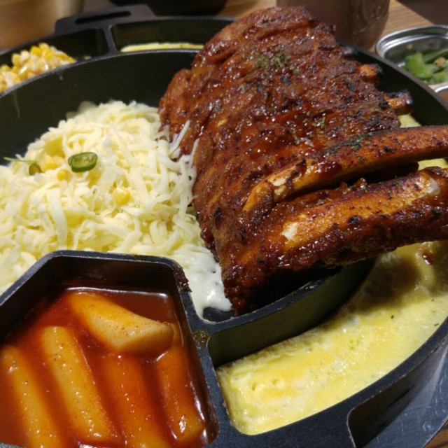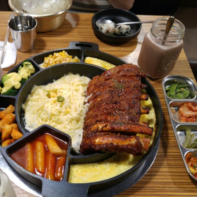 (忠孝敦化站)詹姆仕起司豬肋排台灣總店/邪惡的起司肋排不用去韓國也吃得到之前跟家人去釜山遊玩時!特地安排要吃詹姆仕起司豬肋排這邪惡的小玩意但卻連找了二次也找不到店家!!!!怒怒怒沒有吃到就回台灣了!現在台灣首家分店在台北東區開立了!我無法瘋狂地去排隊只好乖乖等著熱潮沒有那麼高再來晚餐預約時間分為二個時間點:晚上6點與7點半,用餐時間分別限制一個半小時店內還滿大的滿有聖誕氣氛的 ~已入內已經不少小少女們在內聚餐約會放眼望去好想是我們這一桌平均年齡最大XD店內的菜色提供的種類其實還滿簡單的主打就是詹姆士起司豬肋排每人消費低銷就是一杯飲料就算點了不少餐點!沒有點飲料或是酒品通通未達低銷標準喔套餐分為單人套餐/雙人套餐/四人套餐像我們今天共三人來用餐!店家也可以調配成三人套餐的份量主要看客人需求不過我們想要多吃幾款餐點,所以以雙人套餐再加點其他餐點平均下來一個人花費大約500元(不過這樣的份量對大多數人來應該有點不太飽)要吃飽一下可能預算要再高一點桌面不大!所有的餐具(筷子/湯匙)餐巾紙都是擺放在抽屜中因為鐵盤個頭不小!只要鐵盤一送上桌!桌子就會呈現很滿的狀態XD四道小菜 口味都還滿不錯的可再續點分別是南瓜泥/醃洋蔥/黃豆芽/醃蘿蔔金槍魚蛋黃醬飯糰一份沒錯!這是飯糰~需要自己動手Diy的飯糰兒當然就交給我的副手 來處理了自己動手捏出大小自己喜歡的大小那一小鍋的份量大約就是這樣小球的三倍份量米飯熱熱的吃起來還滿軟Q的.所謂金槍魚的味道吃起來還滿類似鮪魚罐頭的味道就是魚味偏向比較重的味道加入了蛋黃醬吃起來但點甜度很快的本日主餐重頭戲上桌了特製的鐵盤!下頭有個電磁爐所以會持續加熱這樣起司絲才會融化成邪惡的模樣XD除了起司/烤肋排之外一旁還有附上花椰菜/甜不辣/玉米粒/烤蛋/年糕等等配菜配菜口味尚可~對了~肋排有分辣度基本上原味就帶有一點小辣的程度對於吃辣很不行的我們直接點了原味由專業的神之手先幫我們將肋排剪成一段一段的此刻起司也融化的差不多了~小少女們放聲尖叫了至少可以拉到40-50公分長的起司差一點有一股衝動想站在椅子上拉看看他最長可以拉到多遠XDDD雙人份的烤肋排大約是7根左右裹起司要裹得漂亮可是需要受過訓練的喔~服務人員會幫客人先裹好一人一根的肋排接下來就是客人可以自己動手DIY~果然有沒有訓練過差很多我的就裹得亂七八糟完美的起司一層一層的包覆在烤肋排上直接套上塑膠手套就可以豪邁大吃了烤肋排很入味!單吃沒有起司的部分醬料甜甜鹹鹹的比起一般美式餐廳吃到的烤肋排調味比較沒那麼重而且肉還滿軟嫩的 !不太需要費牙口來咬XD氣泡式飲料顏色還滿繽紛的但喝起來的口味就是汽水XD加點飛魚子炒飯利用已經清空的鐵盤中心拌炒其實份量也不算太多啦~不過味道算是好的大部分的餐點都會有服務人員協助調理客人只要坐著乖乖等吃就好餐點表現還不錯!只不過單價算是有點小高服務也滿好的~交通也滿方便的希望將來可以有更多樣化的餐點提供選擇…Read More
