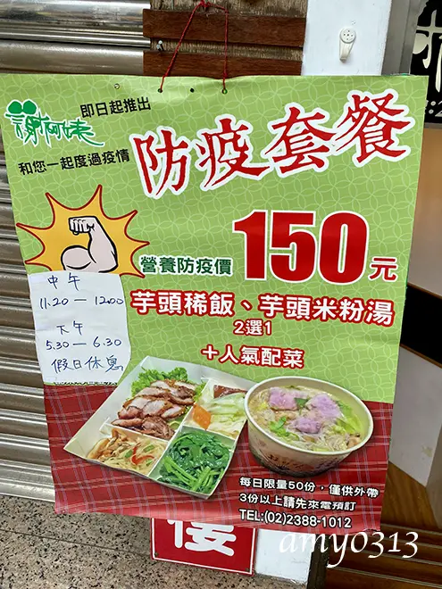 『謝阿姨美食坊』是amy非常喜歡的一家店,常常會想起它,想念那芋頭粥、芋頭米粉的美味,只是每每想到一定會克制不住連吃好幾碗,怕回家後因一餐的放縱而造成體重機上數字增加,只好忍耐到實在饞到不行、再不吃就睡不著時才會造訪。 每日限量50份的"防疫套餐",這也太划算了,下次一定要預訂這個。 店內依舊人聲鼎沸,不管什麼時候來都是滿滿的人,而且平日中午翻桌率還超高呢~。 海帶 口感軟硬適中,味道也鹹香可口,很開胃的一個小菜。 這天的白灼蝦品質挺好的,個頭不小,十分鮮美。 左邊是芋頭米粉、右邊是芋頭粥,我們剛入坐時大概都還有個半桶,但吃完第一碗時就都沒了,還好很快就補上新的了。 這裡的芋頭粥真的非常好吃,口感綿密,芹菜、香菇、油蔥的味道點綴得恰到好處,最重要的是芋頭非常鬆軟,好吃極了。這天吃了三碗,因為跟學生一起吃飯,不好意思再添第四碗了XD。 本來想再嚐一碗芋頭米粉的,結果去添的時候只剩下湯,米粉全被撈光了,心想這樣也好,有喝到湯就可以了,裡頭還有不少芋頭,重點吃到即可,這樣反而不會攝取太多澱粉。 油雞 這天的油雞也特別好吃,連雞胸肉都不柴。 炒青菜 這是菠菜,很嫩口。 超大一條清蒸魚呢~,味道很不錯,魚肉也細緻。 炸紅糟肉和炸牛蒡 amy很喜歡這裡的炸紅糟肉,很香很好吃,且幾乎沒有肥肉,但吃起來還是十分嫩口,連炸牛蒡也是相當美味迷人。 這天的高麗菜也有甜香味。 飯後還有咖啡、紅茶或檸檬汁等飲料,這天的檸檬汁是有史以來最好喝的,最濃最香。 結帳時看到了阿姨們的員工餐,看起來也太好吃了吧,一直有種想問可不可以包個便當的衝動XD。 『謝阿姨美食坊』真的是一試成主顧的那種店家,不論來了幾次都還是那麼喜歡,料理的味道永遠是讓人心怡的美味,對於愛吃芋頭粥的amy而言,有著無比的吸引力呢~。 …查看更多