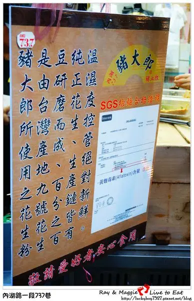 【食祭】內湖737巷豬太郎豬血糕,創始巨無霸豬血糕店 阿餅餅好玩世界等級42014-11-2074 瀏覽 關注 在內湖當我們沒有特別想吃什麼的時候,通常自然而然會想到737巷這是第一次發現,要轉進巷口裡面,有個737門牌就好像各大夜市有個門路一樣的感覺@@ 哈到了737豬血糕算是很有名氣的了,這間豬血糕的big size還有當初便宜的25元價位,讓內湖737豬血糕,成為了一個新地標和打卡點,全盛時期,也是要號碼牌排隊等上個1個小時,才拿得到這平民小吃不過阿餅是這一年才來吃到的!一方面他變貴,也開始有人加盟不再稀有之後,似乎也就人氣沒有那麼足夠,但插旗還是必要的這一個小攤的豬血糕,一天就兩籠擺滿滿的賣完打開木櫃蒸氣這樣噴上來,黑媽媽又好長的豬血糕好熱情的迎接我們豬血糕(35元)一支35元的豬血糕,或許對老常客來說,他變貴又好像很普遍,也就沒啥稀奇但對新客人來說,這樣一支35元的豬血糕,也算是滿大一支的!會先問你要不要辣?!然後沾上特調的醬油調味等等撒上非常多重本的香菜,然後在花生粉上游泳相信也有滿多人不敢吃香菜的,所以他有兩籠花生粉,上方是有香菜的,下方是沒有香菜的,如果不喜歡香菜可以先說阿餅餅只去過兩次內湖737巷,不過卻也總是很有魔力的,忍不住每次都給他買這個豬血糕!分量真的是滿大一支的,阿餅餅手攤開大六就有15公分,一整枝將近25公分的大小咬上一口豬血糕,那個帶點米血的口感,富有嚼勁他的米血算是比較硬一點的口感,不是軟綿綿的綿密那種,可以吃到分明的咬力,是阿餅餅喜歡吃的口感,所以這種放冷一點吃也會挺好吃的喔!會更有嚼勁!總是喜歡牙齒不要太孤單那種的感覺豬太郎的豬血糕,算是好吃的款因為花生粉用的也算是實在,喜歡那個不要過於偏甜的花生粉花生磨得實在,吃得出顆粒感,香度也足!這也是它好吃的加分之處!所以就算人家都說這是觀光客外地人來插旗,阿餅餅倒也還是可以接受的哈哈~~還好他退燒了~~所以不用排隊,35元一支的豬太郎,阿餅餅很願意購買囉!…查看更多+ 6以上食記乃用戶個人意見,並不代表OpenRice之觀點。1分享【食祭】內湖737巷豬太郎豬血糕,創始巨無霸豬血糕店 豬大郎豬血糕 https://s.openrice.com/cHRTm02r4G000檢舉 張貼 評分3味道3環境3服務3衛生4CP值用餐方式外帶人均消費NT$35