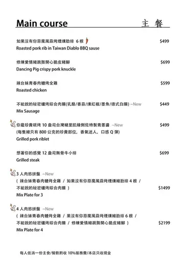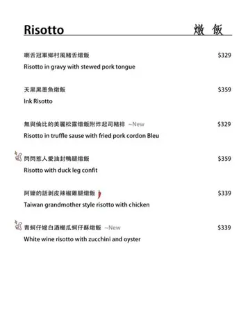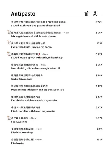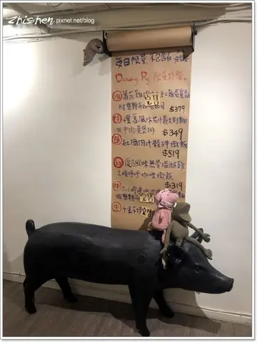Dancing Pig 豬跳舞是主廚Jason以推廣在地食材的理念,加上創意的豬肉料理。將台灣在地食材呈現義式料理的精髄,義大利麵或是燉飯中,都有令人驚喜的元素。這天嚐到酥炸豬耳朵及烤乳豬,還有比賽冠軍的豬舌燉飯,都令人重新愛上豬料理。走進店內後,發現裡面的空間比店門口看來寬敞許多。店內空間呈現長條形,後半部除了廚房仍設置了不少座位。主廚Jason多才多藝,除了豬跳舞之外,另外還經營了<大肚皮義式餐坊>,還有<人帥真好三明治輕食吧>(可惜搬到高雄了>.<)。因為善用豬的各個部份製作料理,還因此出了本<豬肉風味全書>。這本有如豬料理百科全書的料理書,教會大家簡單製作出具風味的豬料理。另外利用豬部位的解剖圖來告訴大家,餐點是取自豬的哪些部位來製作的。首先為我們六人準備了多彩的果汁氣泡飲$110。左起:蝶豆花草莓牛奶、藍柑泡泡、黑醋栗泡泡、石榴泡泡、蜜桃泡泡及蝶豆花檸檬。由於氣泡飲的顏色太過美麗,於是我們一時玩心興起,就玩起了燈光秀。有沒有一種來到夜店的fu?耳朵邊似乎傳來令人身體晃動的電子音樂呢!這個藍柑泡泡在攪拌後,所呈現的就像是星空般的美麗啊!左邊的蝶戀花檸檬凍飲取得最多的好評,因為下面是有如果凍般的檸檬凍。融合了Mojito的檸檬及薄荷,卻少了酒精,加上酸酸的凍飲,真的是很棒的飲品呢!有卵小卷沙拉 $260 特選來自宜蘭的優質小卷,新鮮看得見,煎至表面焦香,再淋點巴薩米克醋。那小卷的鮮美,吃得到卵的嗶波口感,加上新鮮的生菜,是表現優異的前菜呢! 炸物拼盤 $450由右而左分別是加了少許的檸檬美乃滋,是配起司餃。松露醬配的是薯條,酸豆醬則是搭配豬耳朵。這個起司餃炸得金黃酥脆,看起來就好好吃喔!原本以為起司餃是裡頭包了起司,一咬開就會爆漿的那種。沒想到起司已融入在餃皮裡,裡頭是紮實的豬肉餡呢!很喜歡這個主廚給我們第一道豬料理的美味,雖是炸物卻不覺得油膩。尤其是搭上檸檬美乃滋,吃來更是清爽呢!豬耳朵在吃麵時是很常見的小菜,大多是滷的,或是涼拌,倒是第一次見到炸的。豬跳舞的主廚先將豬耳朵煙燻再油炸,讓豬耳朵穿上金黃外衣,吃來就像鹹酥雞。金黃的麵衣上吃到胡椒鹽的鹹香,還有那咬下的清脆聲,真是悅耳!豬耳朵經油炸後,變成脆中帶軟的口感,單吃就很好吃,配上酸豆醬更是別有風味。再來這道料理不得了,是主廚Jason得到第一屆米食大賞米食料理冠軍的燉飯。鄉村風豬舌燉飯 $340 豬舌也是台灣人吃黑白切常吃的小菜,如今與義式料理的結合,聽來就很有趣!據知這豬舌是以雞骨、豬骨、調味蔬菜,再加上紅酒,花長時間熬出來的湯汁。之後將骨頭從湯汁中撈出,再放入豬舌繼續燉,直到豬肉的精華及香味都燉至豬舌中。另外搭配較有嚼勁的義大利米,加上特製的肉汁一起燉煮入味,吃來口感更是獨特。燉飯略帶米芯的口感,一口就吃到肉汁的香濃滋味,豬舌的軟Q口感,真是絕配。常見的台灣食材,以西式料理方法來展現不一樣的味道,果然是冠軍料理,名不虛傳!福生主廚香蒜辣香腸義大利麵 $280香腸配大蒜,也是一種台灣味,如今融入在義大麵中,卻是一樣的美味喔!將香腸取代義式臘腸,再加入大量蔬菜,清炒蒜香沒有過重調味,展現主廚的功力。帶著辣香的義大利麵,味道很足,這一道也是大受好評呢!將將!這個是豬跳舞的預定菜色之一烤乳豬。但這天是為我們特製的半隻烤乳豬,且加入了內餡的特製品喔!目前豬跳舞的整隻烤乳豬$7500,另外烤羊腿$4200,這特殊的食材需事先預訂喔!待拍完照之後,主廚貼心地將乳豬分切為一人份,放上烤蔬菜且淋上特製醬汁上桌。那烤過的蔬菜不需要特別調味,就能吃到食材原始的清甜美味呢!這烤乳豬是採大約五到六公斤重的乳豬,再加上已醃上一天的內餡。並採兩階段來進行烤的程序,才能造就這外表酥脆內餡柔軟的烤乳豬了!外層豬皮的香酥加上內餡的鹹香滋味,就已經相當迷人。而主廚利用剝皮辣椒製成的醬汁,令這豬肉的美味更升級,真是太讚了!這要是多人聚餐指定這道餐點,肯定會使氣氛更熱鬧!這烤乳豬真是人間美味啊!酸甜酸甜青春檸檬凍 $120這是個無法久放的甜點,因為上面的糖粒會逐漸融化,就會失去口感。上面吃來會發出ㄎㄠㄎㄠ聲音的糖粒,配上底下的檸檬凍,真是絕配啊!吃到檸檬凍時,會酸到眼睛快要瞇起來,但加以甜滋滋的糖粒中和出酸甜滋味。這道甜點對於愛吃酸的艾方妮來說,真是太好吃了!默默地一個人就吃掉一整個(羞)夢幻牛奶糖鮮奶酪 $120鮮奶味道很香濃,上面的牛奶糖原本擔心會太甜,但沒想到兩者搭出剛好的甜度。主廚JASON 不甘台灣豬的美味被埋沒,強調豬的每個部位都能做成美味料理。讓豬舌、豬耳大變身,採西式的料理方式,讓這些食材散發出不同魅力。…查看更多