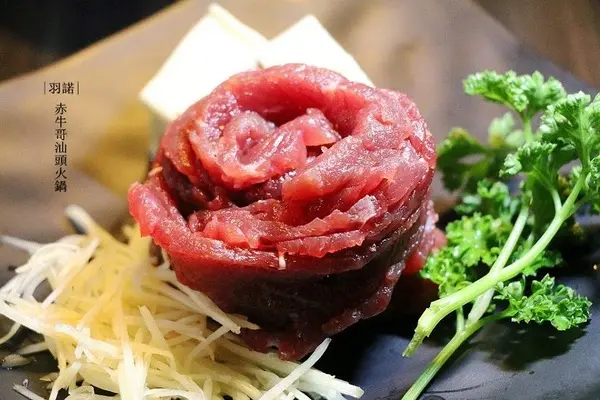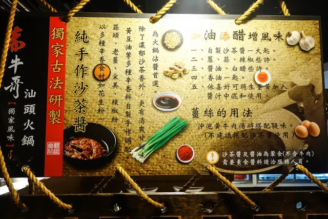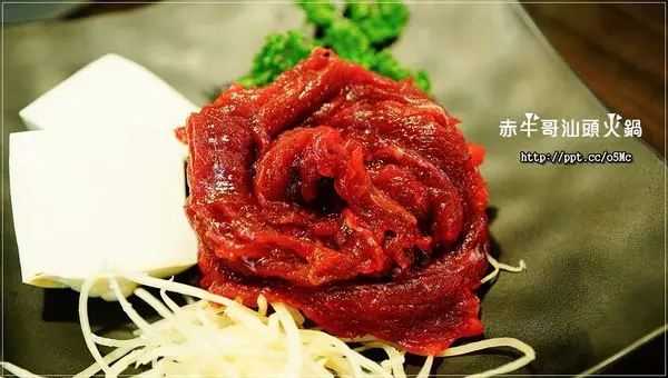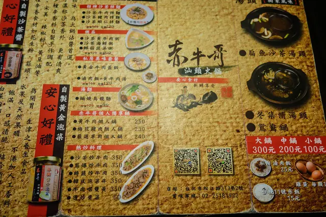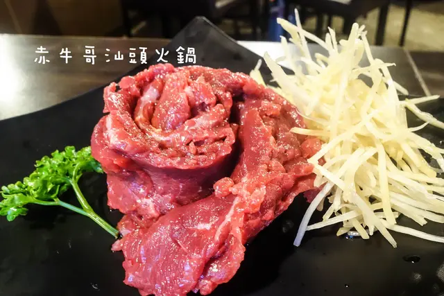 赤牛哥汕頭火鍋傳承自屏東50多年沙茶火鍋老店的做法,自製純手工沙茶醬,溫體台南本土黃牛肉在秘製的扁魚沙茶湯頭涮上幾秒後,鮮嫩帶Q且具鮮美滋味。另採水耕網室栽種的健康蔬菜及高品質配料食材,還有北海岸的現流海鮮,無論甘醇扁魚沙茶湯頭及淡雅冬菜清湯頭,搭配濃郁沙茶醬,吃完一點都不燥口。之後隨著國府遷台,汕頭沙茶牛肉火鍋跟著來台,更成為台灣火鍋的始祖。汕頭火鍋的特色就是用扁魚或乾魷魚加台灣冬菜做湯底,沾牛肉沾沙茶來吃。而如今汕頭沙茶火鍋已成為結合本土食材,成了道地的台灣口味。目前汕頭火鍋在高雄、屏東比較普遍,台北赤牛哥汕頭火鍋近年來獲得很好的評價 。赤牛哥汕頭火鍋室內寬敞,座位數因應客人有多種選擇,還曾容納100人的包場。有像這樣六人的長桌,也有2~4人的小桌。吃火鍋還是坐圓桌最方便了!赤牛哥汕頭火鍋除了菜單上特別食材外,其他採自助式食材配料自行到冰箱拿取。扁魚沙茶湯頭,以扁魚、沙茶、花生醬及獨家配方調成,氣味濃郁芳香不油膩。冬菜清湯頭,有著冬菜的清香,喝得到清香淡雅的好滋味。這天艾方妮喝這清湯喝了至少三碗,真的是很棒的湯頭。冬菜清湯頭煮青菜最合適了!大白菜 $60這個白菜放在扁魚沙茶湯頭底,吸滿了沙茶的香氣,超美味的!北海道洋葸 $50這洋葸輕脆不辛辣,就連不愛吃洋葸也能接受。獨家滷大腸 $150基隆小卷 $150最近友人提到這些屬於<頭足綱>類的食材,真的是很令人喜愛啊!滑嫩中帶著Q彈,一咬下還能爆出湯汁呢!新鮮就是<青>啊!野生大蛤 $150跟小孩手掌一樣大的野生大蛤,視覺就得到滿足。 鮮滑飽滿的大蛤,吃來真的超滿足的!鮮蚵 $150鮮蚵在沙茶湯頭燙過,還保留著鮮嫩的口感,沙茶風味更顯鮮美。特級雪花牛 $350自來汕頭火鍋就跟牛肉搭在一起,雪花牛的油脂分佈均勻,真是太美了!首次嚐汕頭火鍋的艾方妮,對於這濃香馥郁的湯頭愛不釋”口”啊!赤牛哥汕頭火鍋的沙茶醬迷人的香氣,也令人回味無窮呢!不需一大早就去台南排隊等吃牛肉湯,在赤牛哥一樣有新鮮的牛肉美味喔!…查看更多