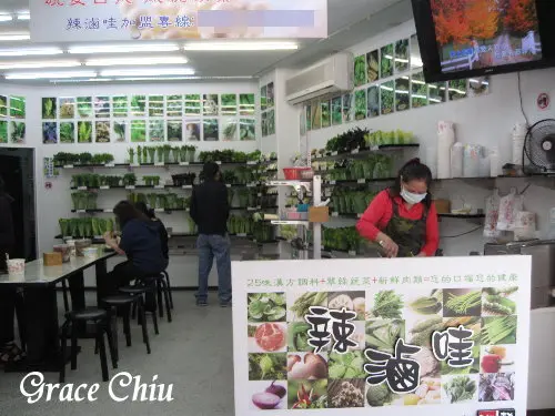 剛開始經過辣滷哇的感覺就是眼前看到一片綠,再看到門前標著“蔬菜森林”,原以為是蔬菜專賣店來著,只是~~店門口還有煮鍋,裡面有客人在用餐?是一併也有賣蔬食的店嗎?再仔細看看店名下有寫著“加熱滷味”,賣滷味的??這樣賣滷味還蠻酷的咧!!  走進店裡瞧瞧,不大的店面其中有近二側的牆面架上擺滿了各式各樣的蔬菜,每種蔬菜都整理的乾乾淨淨排的整整齊齊.  另一面牆上掛了蔬菜小百科的看板,蔬菜小百科看板往下看有陳列菜料的平枱,菜料都有價格標示,且也有用彩色貼布將價格範圍區明顯分出來,蔬菜菇類一律35元,細心的整理.清楚的標示,感覺老闆在經營上著實是有用心!  蔬菜整理的太美了!!!整理成一束束擺進筒架,較易散開的還用紗網包框住,不知道這裡是賣滷味的從外經過實在會以為自己這是間花藝店吶~  比較沒辦法用直束方式呈現的蔬菜就排列在紙板上用保鮮膜封住或是裝進塑膠盒的方式擺設,種類及份量讓消費者可以一目瞭然.  這天挑了一份高麗菜.一塊花干及三個火鍋料,滷汁味道還可以,店內的桌椅雖然簡單了些,但坐在蔬菜環繞的環境裡用餐一邊看著蔬菜百科多認識蔬菜也很不錯.本文全部文字內容.照片皆為筆者個人拍攝撰寫之著作,未經同意請勿盜用或盜轉為各類商業營利行為…查看更多