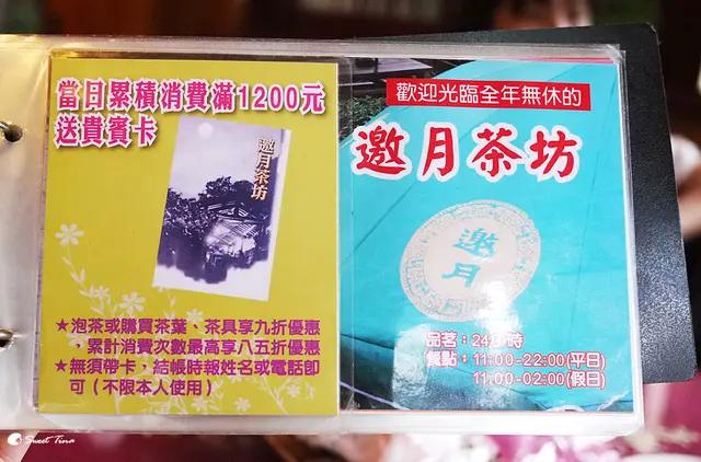 自從有了瑋兒後已經多久沒上貓空泡茶了,感覺真的超久了耶,不過今年的母親節我們跳脫了到都市的餐廳慶祝,跑到貓空上了,一群人吃著合菜享受山上的大自然感覺還滿不錯的,這次我們挑選的是貓空的邀月茶坊,在貓空這兒算價錢平實又料好實在的一間店。不過邀月茶坊有一個小小的缺點就是離貓空覽車還挺遠的,可是將近2公里的路程,帶著小小孩根本不太適合,所以建議早點到去卡附近白線的位置吧,或是找個停車場囉,千萬別亂停在紅線上,聽說這兒開單也滿狂的!邀月門口這條小路是不能開車進來的,只能停在外頭走進來,走一小段就到邀月了。到這兒會有叉路,右手邊會往另一間茶坊,不過指標很清楚不擔心!邀月茶坊可是環繞在山林中的屋子呢!邀月茶坊有室內和室外的區域,在預約時店家就會先詢問坐室內還是室外了,因為這天天候不是挺好的,很怕下雨,所以先預約室內的座位了,不過吃完飯後我們還是移到外頭泡茶了,來貓空吃飯泡茶躲在室內真的會少一點fu,所以強烈建議如果天候不錯的話還是坐室外享受大自然比較棒呢,不過別忘了防蚊工作不能少哦!室內區域有分上下二層,其實範圍不大,這兒還是以室外區為要。後來發現這邊半室外區真不錯咧,不怕雨淋又可感受山林。戶外區很快就會被預訂完了,當時我們吃完飯後要坐幾乎滿了,所以只能移到較偏遠一點點的下方戶外區,不過別擔心都有廁所和茶水補充站呢!邀月茶坊只要消費滿1200就會送一張貴賓卡,而且不限本人,只要報電話來這兒泡茶就可享9折呢!除了開車和走路外,也有公車的選擇,不過班次不好等哦,可要有心理準備呢!邀月茶坊提供的服務,也有WIFI和手機充電器,好適合沒事來這兒放空,不過都來到山上還划什麼手機,哈哈,當然是泡茶聊天囉! 這兒還是寵物友善店家,可以帶毛小孩來這兒走走呢!來這兒泡茶的話,不同時段收取的費用也不一樣哦,大家要留意一下。邀月茶坊提供了不少套餐組合,人少也可以吃美味餐點呢!這天我們是五大二小用餐,本來一直在四人或六人合菜中猶豫,後來我們選擇了四人合菜再另外單點二樣菜,餐點部份總共1830,比六人合菜會來的經齊實惠哦,因為邀月茶坊的份量都還不小,會吃得很飽呢!如果用餐搭配泡茶的話,邀月也有折扣優惠,餐點就直接打9折~這天我們點的是四人合菜 、五更腸旺、三鮮炒麵 、泡茶(鐵觀音)。【四人合菜】叢林水晶雞 - 上面的蔥蒜真的佈滿了雞肉,好叢林啊,哈!雞肉上附著的醬料有點芝麻香氣,肉質也滿嫰的,還滿清爽的一道雞肉。炒時蔬(龍鬚菜) - 炒得還滿清脆可口。珍菇桂竹筍 - 滿滿的菇菇及桂竹筍,和傳統搞得油油的筍絲不同,這道也很清爽,而且一旁的湯汁也非常好喝~樹子魚片 - 和樹子一同蒸煮後,帶點香氣的魚片,鮮嫰可口。包種洛神蜜排骨 - 泡種洛神醬汁讓炸後的排骨不油膩,酸酸甜甜的,很受孩子們喜愛哦!鮮菇菇紅棗雞湯 - 這鍋可是嚇到我們了,滿滿的一鍋,有一半都是料,菇菇和雞肉量都非常多,每人努力大戰了二、三碗還是剩二塊雞肉XD~使用枸杞及紅棗下去熬煮,湯頭很清甜~水果甜點 - 西瓜、紅豆麻糬。單點餐點~五更腸旺 - 中辣,鴨血及腸子的量都不少,是餐點裡面最重最夠味的一道了,好吃!三鮮炒麵 - 這盤份量還不少,有蝦仁、花枝、肉片、香菇、甜椒、高麗菜,疑~還有一鮮是啥??哈,只顧吃沒注意到!這盤可說是料好實在,料比麵還多咧~飽餐一頓後,我們就轉移到戶外區泡茶享受山林之美囉,附近剛好也有幾株油銅花,散落下來的花朵還挺美的。除了交通方面稍微較不便外,邀月不論是餐點還是環境都還滿受我們喜愛的,而且比起一些庭園餐廳價格上也親民不少,偶爾到這兒吃飯泡茶還滿享受的!…查看更多