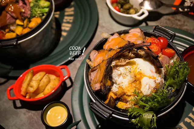 信義區夜晚最閃亮的百老匯風餐廳王品最新力作.CooKBEEF 全球首家!!本周末2/5隆重登場結合紐約街頭風格MIX粗曠工業風以五星級料理手法.低溫烹調舒肥法.熟成方式讓肉質呈現軟嫩.品嘗出最原始的風味首家以72度C黃金舒肥蛋做搭配 用心的將牛肉表層以奶油香煎到金黃撒上胡椒.淋上一點白蘭地厚切1CM.以粉嫩5分熟呈現軟嫩選用台灣濁水溪好米.搭配上主廚特製水果醬 香氣撲鼻.視覺也滿足了最in的吃法>手機先食喜歡大口吃肉.大口扒飯.快速美味.重點是平價好環境 CooKBEEF滿足上述的條件獨創一碗大滿足Steak Rice Boul東西合併的牛排品嘗方式五星級手藝#美國choice等級牛肉#紐西蘭小牛#宜蘭櫻桃鴨#黃金六兩松阪豬肉以220-320間的價格提供給愛吃而刁嘴的朋友美味多一點.加價升級套餐平價時尚.現點現做自助區:餐具/水杯/調味/餐巾紙點餐先結帳.號碼牌放在桌上等候上菜品嘗美味>順序很重要1大口吸氣.280度C高溫鑄鐵盤.吱吱作響2大口吃:3種方法>原味/搭配主廚私房醬汁/沾上黃金舒肥蛋3拌飯品嘗.大快朵頤的快感桌子旁都有吊掛物品的設計品嘗美味牛排飯#五星級舒肥手法#濁水溪好米#搭配280度鑄鐵鍋#美味升級套餐滿滿一桌.千元有找浩克綠蘑菇X涼拌魷魚沙沙套餐60+20(補差價)沒有冰塊的冰涼可口可樂X萊姆紅茶招牌美味 肉食控推薦 酷客舒肥牛排2905分熟的玫瑰USDA Choice牛排搭配上72度C黃金舒肥蛋看不到白飯的爽感淋上主廚私房水果醬 季節食蔬:番茄X南瓜X花椰菜鑄鐵鍋上滋滋作響的美味..大口吸氣以叉子輕輕劃破黃金蛋金黃發光的蛋黃液沾在飽滿的濁水溪米飯上 單純品嘗5分熟的軟嫩牛肉.帶點原始的肉汁.搭配上主廚特調醬汁沾上蛋黃液更香濃滑順一大口好米X濃郁的蛋黃液X厚切牛排這樣吃~肉控飯控通殺鹹香的醬汁畫龍點睛的讓口味更完美結合看似平凡的蛋黃白飯...因為淋上水果醬.特別ㄕㄨㄚ\嘴今天最驚豔的美味2號 野獸派 狂野小牛肋排320紐西蘭自然牧草飼養的小牛一頭牛僅取2份OP肋排搭配上私房辣醬Babe示範>豪邁用手拿起小牛肋排直接啃小牛肋排的軟嫩太過迷人熟度恰到好處的讓淑女們不用斯牙裂嘴辣醬提味讓美味一口接一口蛋黃液與秘醬白飯大過邪惡我特別喜歡洋蔥經過鑄鐵鍋的溫度.熟後釋放出甜味私房醬汁的美味.讓白飯變得更不簡單直接將米飯x舒肥黃金蛋x洋蔥x帶皮南瓜..攪和再一起大口扒飯超級爽快過癮…查看更多