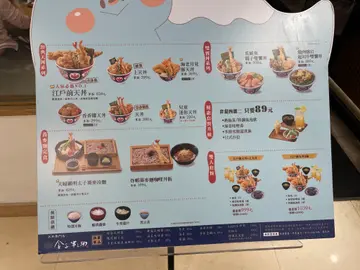 免費小菜 / 柚香冰淇淋 / 套餐的沙拉 / 特調氣泡飲 綜合野莓 / 麻婆豆腐涼麵 / 黑豆茶 / 漬物 / 熱茶 / 醃漬蘿蔔 / 蕎麥麵定食 / 雙人 套餐 / Edomae Tendon / fp 海苔 / Miso Soup / Tempura of Soft Boiled Egg 530ipc / 江戶前天丼套餐 / 江戸前天丼 / 上天丼