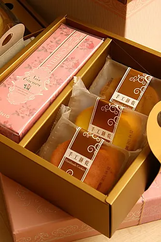 好像很久沒吃到喜餅了,前幾天又收到一盒!哇,很可愛的粉紅色耶!是金格出品的,印象中,好像很久沒吃到金格的產品,最後一次吃到他們家的產品,印象最深刻的還是他們的招牌「長崎蛋糕」,還有果凍!我倒是不曉得金格也出喜餅咧! 沒想到這盒喜餅,還頗得我的緣的,方型的盒子上綁著簡單的緞帶,沒有太多不必要的裝飾品,打開後,裡面分成三層,除了平常常吃的西餅類之外,最讓我開心的就是裡面居然有長崎蛋糕和年輪蛋糕耶!對吧?每次我收到喜餅都很煩,因為一堆小西餅,吃到最後都好膩,還是蛋糕比較好! 不過有點小微詞,就是喜餅還是很喜歡「虛張聲勢」,看起來很豐富,但實際上盒子又做了中空的夾層,實際上內容物並沒有那麼多,不過也好啦!反正小西餅類的產品我也不愛多吃,太多我也吃不下,只是這盒子設計有個很大的缺點,就是把中間夾層拿掉之後,蓋子和盒身是無法密合的,所以明明我還挺喜歡這個盒子,但卻無法將它拿來裝點什麼東西的,結果就變成雞肋,食之無味,棄之可惜啊.......包裝簡單,不錯吧~~而且是很雅緻的粉紅色,我不喜歡可愛風格的~~打開,這是第一層,以小西餅為主。下面二層還很貼心地設計了雙邊提把,方便你把它們拿起來。長崎蛋糕和手工餅乾,這個手工餅乾有三種口味,是咖啡、草莓和法式香草,都很香,是屬於薄片奶酥的那種餅乾,一盒有六片~~醬子的包裝不錯,因為可以減少單片包用掉大量的塑膠袋。耶~最底下這層是我最愛的年輪蛋糕和杏仁酥片,他們的年輪蛋糕出乎我意料地好吃喔!扎實、適度的濕潤,層次也豐富,外層是咖啡味的,吃起來較不容易膩!而旁邊的杏仁酥片,口感酥脆度夠,但糖粉多了點,不然就更好吃了~~金格的長崎蛋糕還是有一定的水準的,雖然和米兒剛從日本長崎吃了最正宗的回來,但是這個和日本當地的相較,是乾了一點,但是口感和風味已在水準之上囉!配一杯紅茶來吃剛剛好~~這是第一層的餅乾,沒拆開拍是因為我拍照時是半夜,拆了就得馬上吃掉,而我是不吃宵夜的~~不過每一種試吃下來,米兒最愛的是港式迷你核酥,就是右前方那個上面有杏仁的,香鬆可口喔!其他的小西點口味就還好,沒有很特別好吃的,但也不算難吃囉~~後來上網查了一下,這一盒心之嫁妙三層禮盒要1200大洋~~在網上看到一個活動,準新娘現在到金格食品門市看餅就送李蒨蓉代言的保濕生物纖維面膜一片,訂購的話送保養安瓶耶~~可惜我不是新娘啦~~有興趣的人可以到他們網站去看看囉~~…查看更多