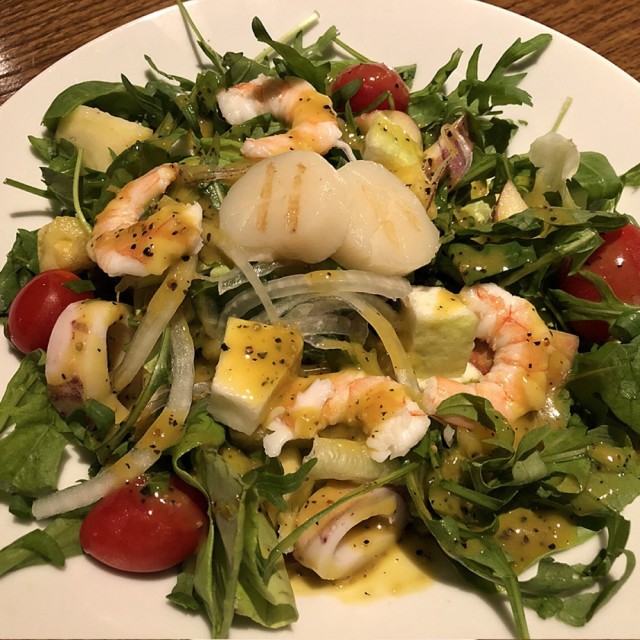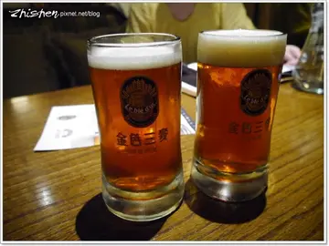 金色三麥有名的就是他們有各種麥子釀成的啤酒在美麗華的金色三麥空間沒有很大平日的晚上還有現場駐唱呢!Menu有各種啤酒還有餐點 店內不大但是還是有細細裝飾擺設別有一番氣氛 現釀蜂蜜啤酒採用台灣的龍眼蜜釀造多了花蜜的香氣甜味降低的啤酒的苦味這款的酒精濃度只有5%苦味偏中低可以喝到淡淡的麥香比一般的啤酒好喝很多 海鮮水果沙拉有大量的鮭魚 水果 還有蝦子 干貝份量十足味道也滿清爽多汁開胃的 金色三麥超值大拼盤裡面有金色三麥的各種招牌料理!有薯條,德國香腸,椒麻雞,德國豬腳薯條是美式的炸薯 脆度還不錯椒麻雞是弄成小雞腿貌 酥脆的外皮和算嫩的肉質另外德國香腸則是比較有脆度及特殊調味的口感 德國豬腳上面還插有小旗幟很可愛豬腳的外皮也是炸得酥脆不會讓人不太敢吃肉質也是頗嫩 拼盤事實上每樣單吃味道都還算不錯不過吃個幾個之後就覺得有點太過油膩了可能比較適合小吃一些搭配大量啤酒!