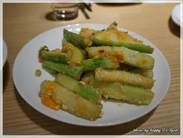 每年爸媽生日都是一起過,今年當然也不例外,因為新成員大寶兒的加入 我們想說不要跑遠在附近吃就好,於是有多間主題餐廳的比漾廣場便是首選 "開飯"承襲了福利川菜數十年正統手藝,用餐時間沒先訂位都得等個半小時菜單上除了多道單點料理,也有為初訪者設計的明星菜排行榜及開飯套餐(菜單) 先來杯酸酸甜甜好開胃的蔓越莓果醋(可無限續杯) 明星菜排行榜第一名的流口水雞(貪吃價$320),光用看的就覺得很美味芝麻香氣濃郁又帶點辣味的醬汁,與軟嫩紮實的雞肉和碎花生粒交織出多層次口感 將炸過的臭豆腐、皮蛋和絞肉大火快炒出臭豆腐撞皮蛋(貪吃價$260) 源自成都地區的川味名菜夫妻肺片(貪吃價$300)是道以"牛"為主料的餐點將滷過的牛筋、牛腱和牛肚切片佐以秘製麻辣紅油,紅通通的看起來很辣但其實還好 好色金絲瓜(貪吃價$220)顛覆我對於鹹蛋只能炒苦瓜、絲瓜就得配蛤蜊的吃法裹上一層鹹蛋黃的絲瓜吃起來鹹香鹹香,綿密juicy的滋味剛好中和掉其他菜的辣 加入蘋果泥烹煮的蜜戀梅花豬(貪吃價$300),軟嫩入味的豬肉嚐起來辣中帶甜 正如菜名翻滾吧!肥腸(貪吃價$350),吃下這道菜辣到我肚子都要翻滾了!!!肥而不膩的Q彈肥腸雖辣吃起來卻很過癮(是說我有被虐狂ㄇ?!),轉眼間只剩一堆辣椒 吃川菜怎能錯過經典剁椒魚頭,若不太會吃魚頭也可改點剁椒鱈魚(貪吃價$420) 淋上開飯自製剁椒的白嫩鱈魚看起來就很辣,雖然爸媽和老公都說還好但我仍不敢動筷 趁熱才好吃的炸銀絲捲(貪吃價$60),另附花生粉、煉乳 老爸特別指定酸菜魚湯(貪吃價$380),加入酸菜及剁碎辣椒一同熬煮相較於僅以薑絲烹煮的清爽魚湯,味道更是豐富,酸辣湯頭越喝越過癮 [ yi言一語 ]這兒也有提供完全不辣的料理,但整餐吃下來嘴裡仍是滿滿的辣味 菜色雖具創意,口味卻小不如我們先前吃的1010湘(爸媽可是讚譽有嘉) *店家小檔案*地址:新北市永和區中山路一段238號(比漾廣場B2)電話:(02)8231-5388營業時間:平日11:30~15:00 假日11:30~17:00 / 17:30~21:30嚐鮮日:2015.06.06…查看更多