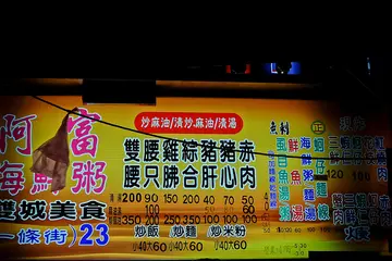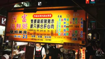 台北雙城街夜市(晴光市場)美食很多,在夜市最前端的【阿富海鮮粥】生意超好,當天見到排隊人潮我們就跟著排了實際吃後就會知道為什麼會大排長龍了,海鮮粥料多實在,一碗裡有滿滿的蚵仔、蝦仁、花枝、豬肝、魚肉、肉絲和魚丸等,風味也很不錯,其他的炸三鮮、麻油雙腰等也都是來阿富必點的美食佳餚阿富海鮮粥地點在雙城街與農安街交叉路口,就在夜市最前端,經過不容易錯過,見到排隊人潮那攤就是了!無論內用或外帶都是要排隊點餐,內用店家會安排桌位攤位上新鮮食材相當誘人,點餐後老闆會現場夾料下鍋煮,現點現煮阿富海鮮粥菜單及價格沒有點菜單,直接看攤位上價目表點餐,主要賣海鮮粥、麻油雙腰、海鮮湯、炸三鮮及炒飯、炒麵等最近天氣冷,很適合吃雙腰、腰只,有湯、麻油或清炒可選擇海鮮粥 $150看到價格時會覺得有點貴,見到粥本人後就覺得很超值,用料豐富且新鮮,海鮮有蚵仔、蝦仁、花枝及魚肉等,另外還有肉絲及豬肝等,隨便一撈都可以撈到料,吃起來完全不空虛現點現煮,米粒粒粒分明和大骨高湯搭配得非常好,口感風味都很不錯蝦仁很大顆,花枝也切得相當大器,蚵仔也很飽滿,讓人覺得滿滿誠意,是很值得吃的一碗海鮮粥炒飯 $50有大小可以選擇,大的是70元,另外也有炒麵及米粉,都是已經先炒好的原本我對於是先炒好的炒飯沒有太多期待,沒想到口感味道也都很不錯耶,這是兒子要吃的,他先吃一口後就說很好吃炸三鮮 $180這盤炸三鮮也是誠意十足,有蚵仔、蝦仁及花枝,也可以單點,單點一樣是130元海鮮用料跟海鮮粥是一樣的,都很新鮮且大器,吃起來也是外酥內嫩的口感清炒腰只 $220無論麻油或是清炒都是這價格,麵線則是需要另外加價20元,建議麵線必加,他們家的麵線也好吃腰只切的大塊厚實,份量也不少,口感很嫩,麵線吸飽湯汁精華吃起來很有味道,這盤也超推薦,喜歡麻油香氣的就可以點麻油風味的!阿富海鮮粥更曾經獲得臺北市政府舉辦的2008年傳統市場節「天下第一攤網路票選小吃類」第一名,來到雙城街夜市,如果沒有特別想吃的可以考慮吃這攤!注意!!每個人口感喜好、感受及價值觀不同,文章內容為個人旅遊或享受美食後資訊分享我喜歡不代表你也喜歡,我不愛不表示你也不愛純粹與大家分享旅遊或美食資訊,麻煩請自己多做功課、觀看評論後再決定是否前往旅遊或用餐!…查看更多