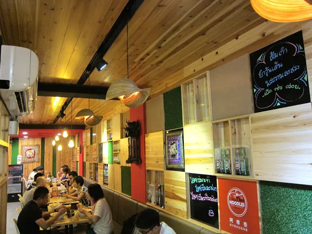 在東區延吉街新開幕的一間泰式小吃餐廳(原Nooddi Taiwan 泰國麵食)、泰式手搖店面,主要會知道這間是因為好友發發(FaFa's Life List)在那附近工作而通知我的!剛好晚間要拿東西給對方所以就相約試看看了!對於泰式料理、飲品都非常的有興趣,也常常在台北嘗試泰式小吃店面和飲料店似乎也沒幾間和我胃口的!我們是開幕當天去用餐,店員不熟悉店內情況我換了三次坐位有點煩,不過最後有成功點餐且晚一步就要等的樣子!每桌都有放上泰國人使用的調味料,若覺得不夠鹹、辣、酸、香、甜都可以自己加!而回家其實才發現這間店面原來是Nooddi Taiwan 泰國麵食搬家搬過來的,怎麼會和飲料店合作我就不知道了!只是想說店面比之前大了多怎麼還會出錯呢?不過言而總之餐點也和以前大不相同了!有可愛的泰式路邊攤擺設,可能是我覺得今天的亮點吧!!看一看我也很想在家裡擺一組!內用也有販售飲料,當時問店家是說可以直接到外面點!可能是新開幕吧,裡外都有賣但裡面選擇較少且也不知道容量是多大!建議乾脆請客人到外面點或是裡面點的外面做好後送進來~菜單請點入當天要什麼沒什麼所以連有名的媽媽麵都沒了,所以點用豬肉奶香湯麵 110元份量不多選用米線,本來想選米粉也沒有了,味道還可以但其實頗淡的,和我以前吃的味道似乎有再清淡些,肉不嫩整體表現很一般簡單來說其實價格不算便宜,男生來講不會飽!想點傳統海鮮媽媽麵結果又都沒有了...,所以點用了傳統海鮮冬粉 150元冬粉沒一下就軟爛的所以要儘快吃,我只能說我們品嚐的時候已經是軟爛的,不知道是我們拍照的影響還是本來就這樣了!份量來說男生吃不飽女孩可能剛剛好!味道還算一般適中,酸辣的程度都是一般人能接受所以想要再更重口味可以自己調整!這樣的價格我覺得較高了些和裡面詢問後可以自己出來點飲料,我認為裡外的飲料價格要不統一或著是就由這邊出飲料就好,不然進出這樣買除了麻煩外也是困擾客人到底可不可以出來買除的飲料系列也有賣冰滴咖啡類的,不過應該也是有混搭泰式風格!可以看到櫃上滿滿的泰式原料,是說當天奶類的部分有些都沒了,也沒有摩摩喳喳...(有點失望)只有一般的泰式歐蕾 50元和泰式抹茶奶綠 60元(當天皆點中杯免費升級大杯)喝起來整體都沒有到很濃郁,兩杯茶味不夠重而泰式抹茶奶綠加抹茶的感覺也沒有特別的感覺!或許是我自己熱愛濃郁的茶香和奶香所以見仁見智,最後回家前還是給他一次機會買買正統的泰式奶茶,可惜對我而言茶香奶香還是不夠吶!底部還看得到茶的渣渣,還有覺得可惜的是不是現沖泡給客人看,另外覺得點完飲品後製作完成卻叫的不夠大聲,飲料擺在那邊客人也在原地都等了好久,所以大概就是剛開幕的混亂期吧!? …查看更多