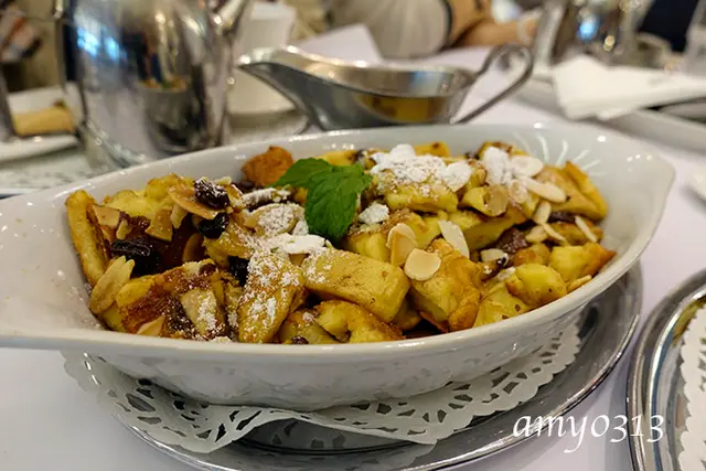 上回跟幾位好友在復興Sogo樓上的『Kaffee Amadeus 阿瑪迪斯咖啡館』喝咖啡聊是非後,發現那裡的環境和咖啡都挺不錯的,很適合聚會聊天,重點是上次大家沒吃到甜點留有些遺憾,因此這次原班人馬再訪,專攻甜點。『Kaffee Amadeus 阿瑪迪斯咖啡館』可能因為位置較偏,所以很多人都不知道復興Sogo10樓有這麼一家餐廳,可能也因如此,生意不像樓下那幾家名店那麼好,所以每次來都有位子,這樣也好,人不多就不會那麼吵。 再訪那日剛好寒流來,天一冷就想喝熱巧克力,『Kaffee Amadeus 阿瑪迪斯咖啡館』的熱巧克力很特別,是熱牛奶加上巧克力磚。 巧克力一放入牛奶內就開始慢慢溶化,這杯巧克力牛奶確實挺好喝的,不會很甜,但很濃很香。 凱撒煎餅份量很大,難怪店家會稱之為“同享點心”,這要人多才有辦法消化,最好是四個人以上再點。 這個凱撒煎餅很好吃,軟中帶Q,口感很好,吃起來有著淡淡的蛋香與牛奶味,也不會太甜,相當討喜的一款甜點。 薩爾斯堡蛋霜糕 完全用蛋白做的蛋糕,現點現做,需等40分鐘左右,被稱作奧地利版的舒芙蕾,口感非常鬆軟,一放到嘴裡就化了,相當特別的一款甜點。兩次造訪『Kaffee Amadeus 阿瑪迪斯咖啡館』後,對它的印象是越來越好,這裡的咖啡、甜點都嚐過了,確實都很不錯,下次想要來試試它的餐點,到時候再來跟大家分享。…查看更多