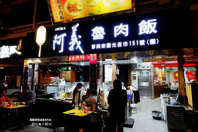 阿義魯肉飯50年老店|捷運龍山寺站、艋舺華西街夜市必吃美食 羽諾等級72020-06-21147 瀏覽 關注 羽諾這天介紹的"阿義魯肉飯"可是華西街觀光夜市超熱門的必吃美食、小吃之一以極盡豪華的海味蚵仔魯肉飯在地深耕50餘年 吸引不少老饕 "阿義魯肉飯"距離附近捷運龍山寺站步行約15分鐘左右可以到達除了許多饕客會過來外 也成為許多網紅、IG客打卡的熱門小吃店 以前常常來逛華西街夜市居然沒發現這邊有間赫赫有名的阿義魯肉飯本來以為會是個老舊路邊攤不過近幾年應該有經過改裝門面裝潢看起來是頗有質感的 阿義魯肉飯有街邊的座位及店內座位用餐空間蠻寬敞的 店內的座位區還有冷氣可以吹這種炎熱的天氣還是坐店內比較舒服 醬料及餐具都可以在餐檯上自行取用!! 阿義魯肉飯的招牌蚵仔滷肉蓋飯$125元雖然覺得價格有一點點高但今天最主要就是為了這"蚵仔滷肉蓋飯"而來再怎麼樣都要吃到點完餐後 不一會兒功夫餐點就上齊啦不得不說這"招牌蚵仔滷肉蓋飯"蚵仔分量真的給得很霸氣 一顆顆肥美的蚵仔 在米飯上堆出小山的形狀光看就讓人流口水!! 魚皮湯及魯鴨蛋、油豆腐也不錯!!滷鴨但及油豆腐很入味 吃起來超下飯~招牌蚵仔滷肉蓋飯 招牌蚵仔滷肉蓋飯不論從哪個角度看都覺得霸氣愛吃辣的朋友記得加點辣椒更好吃蚵仔滷肉蓋飯的蚵仔每顆都圓潤飽滿加上青蔥與蒜酥 香氣更甚重點是新鮮度很夠 完全沒有腥味一入口就能感受到來自大海的美味海鮮味與豬肉的完美結合 沒想到意外的搭搭著辣椒吃真過癮魚皮湯魚皮湯的魚皮也很Q簡單的用薑絲煮就好喝了搭上蚵仔滷肉蓋飯真有說不出的滿足啊 2018 2019台灣滷肉飯節都還有得獎呢!! 阿義魯肉飯的"招牌蚵仔滷肉蓋飯"真的堪稱經典 羽諾這天的介紹到這邊 希望大家喜歡經過附近時不妨也來嘗嘗看吧!!…查看更多+ 14以上食記乃用戶個人意見,並不代表OpenRice之觀點。讚好分享阿義魯肉飯50年老店|捷運龍山寺站、艋舺華西街夜市必吃美食 阿義魯肉飯 https://s.openrice.com/cHRTm02N5G200檢舉 張貼 評分4味道3環境3服務3衛生4CP值用餐方式內用同步刊登https://v84454058.pixnet.net/blog/post/...
