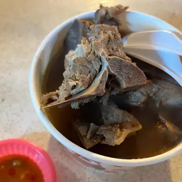 以前就在饒河街夜市中間喝過這間陳董藥燉排骨一直記得湯頭很美味,排骨也很好吃~這次又跑到饒河街就特地去喝一下可是我喝得這間是店面是在夜市外圍的喔~所以不用去裡面人擠人就可以喝到看一下這鍋湯頭~超大一鍋,而且裡面應該藥材很多,補得很!!裡面共有十多種藥材,熬煮至少一兩個鐘頭而成的湯頭~難怪這麼美味!裡面賣的東西種類不多,就是魯肉飯、藥燉羊肉以及藥燉排骨只是他家的豆瓣醬還真的是超好吃的,所以也有賣豆瓣醬喔~~~我記得以前吃過是5.60元,現在變成70元嚕 ~應該已經變好一段時間嚕,畢竟我也距離上一次吃到很久嚕XD我的藥燉排骨來嚕~~~看到這種排骨我超喜歡的耶!這愛這種部位的排骨口感特別好~又方便吃在店內自行去拿取豆瓣醬來沾~他的豆瓣醬不死鹹,帶有濃郁的香味以及微甜的滋味,搭排骨好好吃喔!其實我應該買一罐回家的,這應該是老闆她們自己做的喔。吃這排骨,我都喜歡用手拿取,慢慢的啃肉,吃起來超過癮的!肉質有嫩但是也有咬勁喔~排骨算燉得不錯,是我喜歡的口感~~~裡面當然不是全部都是這個部位的,也有一整塊滿滿骨頭要慢慢挑肉來吃但是肉質還是有嫩~所以輕鬆就可以啃乾淨,讚啦~ 這個湯頭雖然很濃郁,可是卻不油~其實我覺得他湯頭很清爽耶~~~我以前一直記得這間的湯頭會有很明顯的甜度出來~可是沒想到這次喝還真甜,雖然可能還是自然藥材散發出來的甜可是還真的是這次喝甜到有一點希望他降低一點會更好XD雖然還是很好喝! 但我隱約也有聽到其他人提到他湯頭有一點太甜不習慣有機會大家試試吧,其實還是很不錯的,我下次會想去試試別間比較看看。