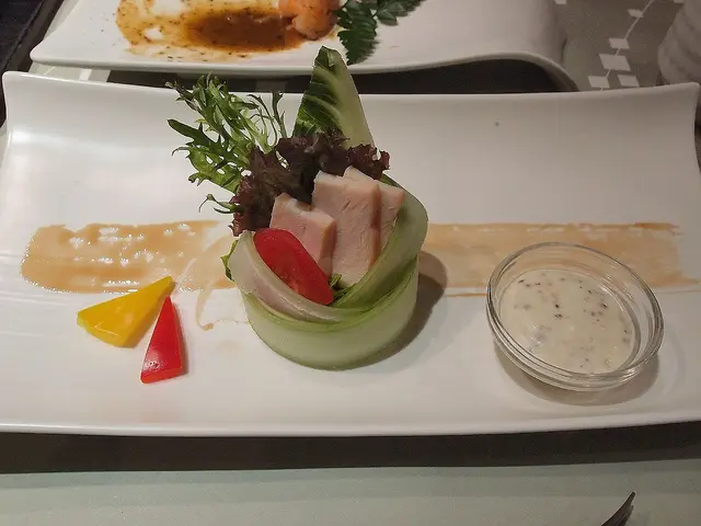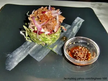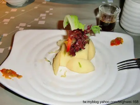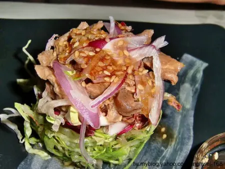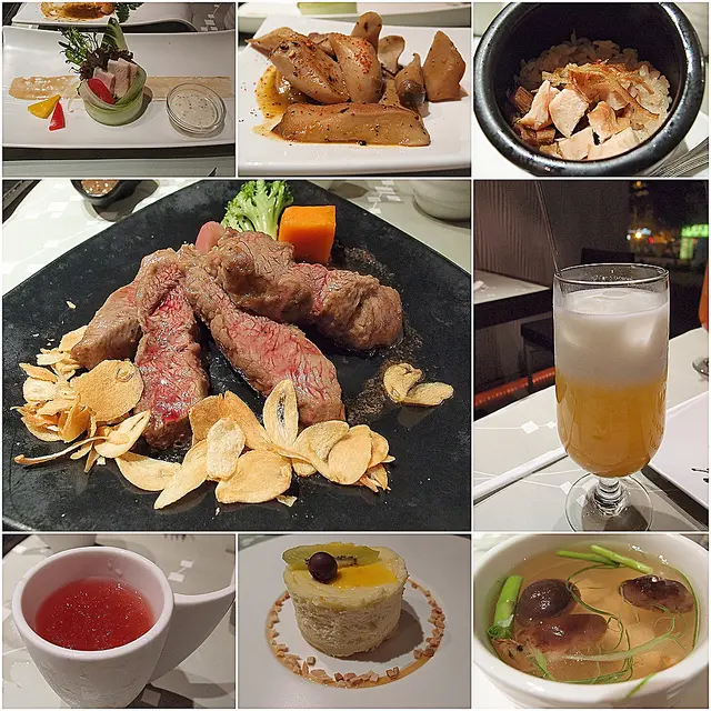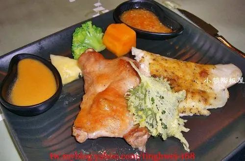 敦化南路上的陶板屋蠻好認的,紫色亮眼的招牌,很難不吸引你的注意力。位於二樓,樓梯入口稍微陡一點點。荔香鴨胸沙拉粉色的煙燻鴨胸看起來頗有嚼勁,生菜方面很新鮮,淋過荔香和風醋後更顯味。旁邊附的百香沙拉醬,酸酸甜甜的較濃稠,不過對我來說太甜了。香橙牛肉沙拉串起來的沙拉蠻少見的,看起來精緻,但想將它鬆開有一點點小困難。去皮柳橙、生菜與牛肉一起吃,有種原始美味,澆上酸甜香柚醬汁後味道豐富些。烤杏鮑菇看到這道菜名,不太會想點它;卻意外的好吃。醬燒後的杏鮑菇,味道很棒,鮮嫩柔軟,撒了點七味粉,一點也不像平時那種乏味的杏鮑菇。附註 : 旁邊還有一顆醃製梅子香蘋海鮮燒蘋果跟海鮮配在一起蠻新穎的。裏頭有洋蔥、培根、洋菇、魷魚還有主角"蘋果丁",裡面的白醬將它們融合在一起,有點像是精緻版的焗烤白菜。蘋果丁讓這道菜變得清爽不膩口。番茄海鮮濃湯外表與南瓜濃湯十分相似,美味鮮甜,搭配香酥麵包丁,相當有飽足感。香蔥鮭魚炸飯糰金黃酥脆外衣很細緻扎實,內部則是拌過奶油鮭魚與香蔥的飯糰,嘗起來口感豐富,切開夾起後不會散落。好吃呢!五目角豚炊飯由黑色迷你小甕盛起的炊飯,看到就覺得很討喜。壽司米與糯米拌入照燒後的豬五花一同炊煮,配料還有銀杏、毛豆,吃起來清爽健康,尤其米粒與豬五花一起入口,味道相左,馬上又想接一口。桑椹醋汁裏頭有些細緻小冰沙,喝起來酸甜解膩、透心涼。這類型醋汁幾乎每個人都愛呢。果香酥烤鴨胸鴨胸肉表皮酥脆,肉質鮮美軟中帶Q勁,是我吃過最美味的鴨胸肉了另外可沾主廚特調果香醬汁,不過單吃就十分美味囉。陶板海陸朋友選擇了牛肉與不帶刺的魴魚片組合,附上黑胡椒醬與茄汁醬,另外還可選雞肉或著豚肉。牛肉多汁有嚼勁,魚片裹了麵衣炸過,稍顯油膩了點。整片的紫蘇葉擺在中間,頗有秋意~紅豆抹茶奶酪奶酪口感沒那麼柔軟。蜜香紅豆,看起來就很鬆軟,配上奶酪一起吃,可以中和蜜豆的甜。盤上有點像似奶油色的就是抹茶醬,一點點的粉綠,但是沒有很明顯。這麼偏粉色的抹茶醬,倒是第一次看到。芒果優格布蕾黃澄澄的芒果色,吃起來比奶酪細緻綿密些。莓果美妍茶(HOT)有一丁點酸味的莓果茶,壺裡還有蘋果小切片,附上砂糖。這杯子的螺旋讓我想起MUJI的白瓷馬克杯,真漂亮。蜜香烏梅飲(ICE)攪拌前的烏梅飲,顏色相當深沉,味道似乎很濃醇。友人喜歡它的酸甜滋味。可以自行攪拌,體會杯中色澤轉換也是一種趣味。和風洋食的吃法,多了點健康感。…查看更多