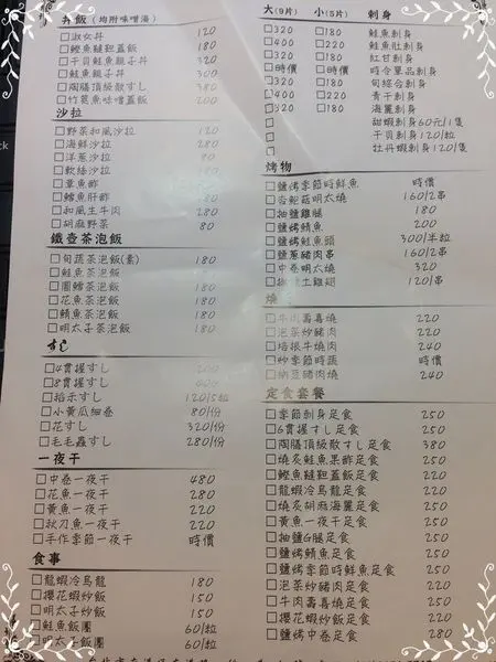 本來想著這地區的美食似乎不多,我知道的就是北大荒賣水餃的,不過這次因為有票券可以來這邊用餐,出發前才知道陶膳壽司鋪在東區本來就有一間後這邊也開了一年多販售著不太一樣的料理!當天我們算是第一組客人,巷弄內不容易發現也一度以為走錯條了!一樓的座位還算蠻剛好的,店家也有地下室的座位區(並無去拍攝)有些料理菜單也會寫在黑板上可以看看還有日本來的多種汽水,都好可愛每罐都想喝喝看!今天整體的服務覺得很不錯,不過後頭比較忙收桌就稍微慢了些!去日式料理不免都會上個開胃菜毛豆,這毛豆好像少了點味道我沒有很喜歡!使用LINE APP訂位招待的小菜(活動不知道到什麼時候),這胡麻龍鬚菜吃起來很香很順口,一下就被我們兩個解決了!當然要喝一下日本的汽水,這瓶伊三郎是番薯風味汽水,第一次喝到這樣的汽水覺得很特別,口口就是汽水甜甜的滋味外會再真的感受到番薯的氣味,非常的特別!店家還幫我們加入了些燒酒來做搭配,說這樣是非常適合也熱門的喝法,不過我自己本身不太喜歡燒酒味到所以就交給S了(未成年請勿飲酒,飲酒請勿開車)前菜-山藥細麵及鮑魚刀工極細的山藥細麵上方搭配了水海膽和昆布淋上了些許醬油後攪拌品嚐,不時吃的到昆布的香氣非常滑順又香,水海膽一點腥味都沒有讓人吃的也特別開心!鮑魚的氣味蠻獨特的,鹹香入口有些彈性我覺得很不錯吃!牛蒡手卷胡麻的香氣很重,可以蓋住我不喜歡的牛蒡氣味,所以整體我覺得很好吃!會想要再叫一捲來吃吃~紫蘇梅醋飲裡頭的純菜喝起還好特別,也是我第一次喝到這樣的東西,口感有些像山粉圓的彈性帶一點脆度,和紫蘇梅的酸甜口味一起喝下,可以清除嘴裡的餘味!生魚片(旗魚、竹筴魚、黑喉、海釣紅甘、甜蝦)裡頭最喜歡的是黑喉、旗魚都帶甜味及嫩口的口感,黑喉還多了一些些彈性,另外紅甘和竹筴魚都是較有Q度的,竹筴魚味道較重比較不是我喜歡的味道!但基本上以上的生魚片都很新鮮,毫無腥味我都敢吃了~握壽司(鮭魚松露、干貝、蝶魚、鰹魚)其實我只喜歡吃左邊三個,因為最右邊的鰹魚口味太重了厚厚的鮭魚本身就讓我很喜歡,店家搭配上松露油說很好吃,一吃下去不得了的合拍,真的是我喜歡的香氣!!不過S不愛松露所以就無法體會這樣的感覺,右邊的干貝握壽司就少了點特色,整個被鮭魚比的下去!共通點就是都很新鮮有甜味蝶魚也可以說是比目魚,不過吃起來並沒有太讓我驚豔,反而是上方的鱈魚肝讓我覺得很香,襯托了生魚片的甜度!右邊的鰹魚吃一口有很重的薑味,我個人不大喜歡!明太子可樂餅起司和名太子都很濃郁的味道搭配再一起口味會稍重了些,底下的醬汁帶些酸味也可以讓可樂餅有另外種風味,不時也解解濃郁的易膩口的感覺松阪豬、牛肋條、青醬筊白筍、明太子手羽松板豬脆口入口香氣十足我們都很喜歡,牛肋條嫩口也蠻好吃的不過我本來還期待會有辣度,不過一點都不辣就是了!青醬筊白筍也算是熱門的串燒之一,青醬味道濃郁又香搭配保有水份的筊白筍越吃越順口!明太子手羽鹹香剛剛好,明太子不會過鹹讓人越嚼越香!一旁還有苦瓜和番茄,苦瓜為危的酸甜味會有一點點苦口,而番茄有這麼些像梅子很脆口金莎蘆筍蝦先炸後炒整個很脆口,雖然整體覺得頗油的但是鹹蛋的香也讓人忍不住多吃幾尾蝦!酒蒸蛤蠣蛤蠣蠻肥美的有些有很重的酒味有些又不會(不一定很看機率),底下的湯汁覺得酒味還不會太重,混合了些奶油香氣我覺得很好喝,不過喝多有些鹹口就是了!未成年請勿飲酒,飲酒請勿開車甜點-覺得太甜了,不然我蠻喜歡吃綠豆加大麥仁(或是薏仁)錫蘭紅茶甜度固定,還算順口的收尾! 整體覺得這邊料理精緻也都蠻不錯吃的,看到店家再製作一些料理我都也快流口水了,是蠻不錯的一間日式料理店!…查看更多