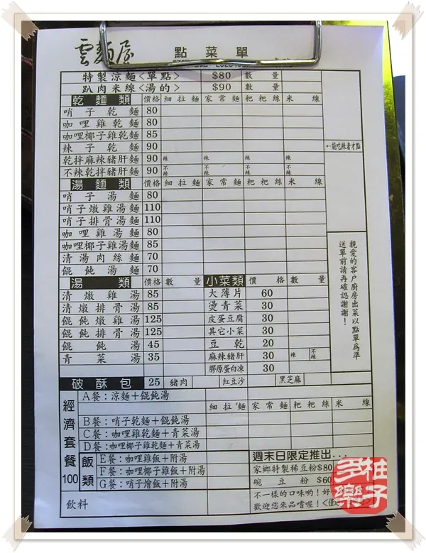 個人一句心得:小菜甜點比麵點出色,回訪率中等可以容納40多人的店鋪陳設簡單大方而且看來乾淨清爽,沒有一些傳統小吃店常見的雜亂髒汙感。牆上的菜單也頗有古風,以竹簡代替常見的壓克力板,連字體都顯見樸趣。乾拌麻辣豬肝麵豬肝既小且薄,但麻與辣卻是毫無虛假的在口腔內產生灼燒感,跟豬肝本身原有的苦味還蠻搭,細拉麵麵條口感不錯但麻辣豬肝實在太搶味,吃不太出乾拌麵本身的味道。哨子乾麵哨子麵其實本來是流行於陝西一帶,因為在快速吃麵時發出的聲響如同哨子聲而得名,不過在臺灣普羅大眾都誤認為是雲南菜式。這個哨子醬可以想像類似大滷麵或酸辣湯的味道,口感滑軟中帶點稠度。麵條部分選擇不常見的粑粑絲,一種雲南傳統烤米餅擀成薄片再切成條狀,白話點就是雲南的麵條,不過不是用小麥而是米製成。粑粑絲的口感蠻獨特,比較飽實而沒有一般麵條的Q度。紅豆沙破酥包破酥包也是我每吃雲南小吃時必點,和入豬油桿出來的麵團讓包子在蒸熟後外皮產生一片片的層次感,鬆軟中又帶點Q彈韌性是跟傳統包子的差異處,包入紅豆餡當成一餐的收尾甜點再美好不過。官網:無地址:台北市松山區八德路四段247號電話: 02-2528-4527營業時間: 11:00 ~ 21:00 (每月第一個周日公休)鄰近交通:捷運南京三民站可否刷卡:不可TIPS:麻辣豬肝、破酥包非常值得一試…查看更多