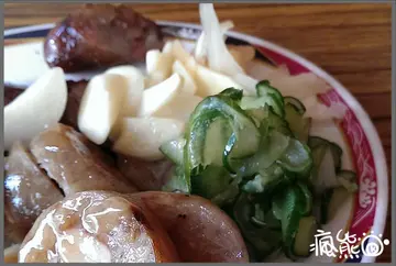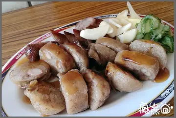 哈~愛上吃這類的小吃了,所以到潮州圓環時,不去吃冰也不去吃黑輪和烤玉米,就來吃這霸王大腸香腸,除了原辣味外,還有別的口味的香腸耶,不過我還是喜歡原味的多一些。那超粗的大腸,果然是用真的豬大腸去灌的吧,很有古早味咧~烤爐上香氣還真的是迷人啊,等不集要來上一份了啦。大腸香腸上桌啦,這大腸的份量還真是不少呢,搭上的是醃漬小黃瓜和蒜片。小黃瓜的話,對我來說有點太少,哈~如果可以多一些些就更好了,這樣搭著吃起來才會更爽口解膩啊,畢竟這都是油脂度不少的小吃咩。大腸的話有它的獨特香氣啦,表皮烤得有些繃,所以吃來有些許的焦脆口感,內在的餡都有熟透,吃來相對的會顯得Q,還不錯啦,香腸的話,這肥肉會明顯得多上一些,吃起來香氣夠,不過對我來說是太肥了些,所以肯定要搭上些黃瓜才會爽口些啦。PS.以上為個人口感和喜好,僅供參考啦!…查看更多