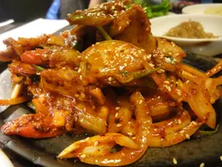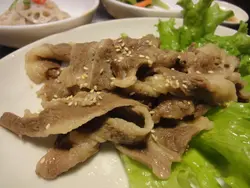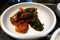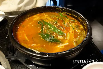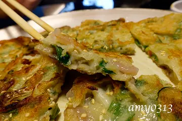 不知道是不是韓劇看多了,最近突然對韓國料理起了興趣。台北市的韓國料理雖然不少,但評價好的卻不多,而且有好些店家開不到兩年就歇業了,找來找去費了不少功夫後才決定先從幾家老店開始吃起。位於永康街一帶的『韓鮮亭』是在看過許多家店家資料後選擇的,其實這天最主要的原因是方便停車啦~。 點好餐後服務生先送上小菜。六款小菜味道都很棒,只可惜份量有點少,吃不過癮呢~。這裡的小菜不能免費續,但可以加價單點。 其中最好吃的是這個小黃瓜,後來又加購了一份,只是加購的忘了拍照,一份$50,份量比照片中多蠻多的。 這裡的泡菜不列入小菜的範圍內,得另外單點,一份$100,味道很不錯,算是比較新鮮的泡菜,酸味不會很重,口感清脆,amy挺喜歡的。 泡菜炒飯炒飯裡的泡菜就比較有酸香味,炒起來特別好吃。 炒飯附的湯也挺不錯的,淡淡的酸香,十分開胃。 辣牛肉湯還真的有點辣,冬天來上一鍋應很過癮,只不過裡頭牛肉很少,所以鮮味有些不足,可惜了點。 海鮮蔥餅 這個海鮮蔥餅很好吃,它比一般的海鮮煎餅薄一點,所以表層的酥脆感特別明顯,也因為加了大量的蔥,所以蔥香味很濃郁,是相當美味討喜的一個蔥餅。這天造訪『韓鮮亭』的心得是小菜厲害,蔥餅也很棒,無奈兩人胃口有限、能點的不多,期待下次再訪。另外也想請大家推薦好吃的韓國料理給我們哦~。…查看更多