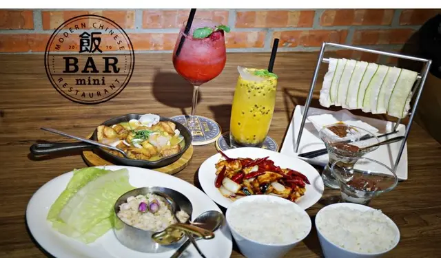 中菜無界限,創意也能成為新經典,年輕人也會愛上的時髦中菜近年來有越來越多中菜與台菜餐廳,將料理做的更精緻、時尚,飯BAR集團算是箇中翹楚,一直以來以推廣時髦中菜為宗旨,不僅已經開了了四間分店(內湖、忠孝、微風信義、微風北車),我更喜歡它每間店都有各自的風格,連鎖體系卻又不是完全複製,就像每個孩子有著自己的個性一般,不僅裝潢不太相同,每間分店也有20%的限定菜色是該店才有的,很符合年輕人愛嘗鮮的特質!這次認識了飯BAR mini忠孝店,讓我更期待下次有機會,到其他不同的分店用餐。BAR mini忠孝店於忠孝復興站步行5分鐘就可達,更是最適合家庭與朋友聚餐的地點,馬上被我列入下次聚餐口袋名單。    一走到門口,會以為是走錯了,甜點櫃台、紅酒、飛鏢機?我們探頭探腦的才發現,這很像餐酒館的門面,原來就是飯BAR mini本尊無誤。飯BAR mini裝潢走的是有點工業風的感覺,整體設計十分年輕有朝氣,桌椅大多使用木頭與鐵件的元素、裸露管線,搭上皮質沙發,看起來有點像是美式餐廳或是咖啡廳。▲ 飯BAR mini有兩間包廂,可容納10~12人,包廂的低消中午低消NT$6000元/晚上低消NT$8000元 ,在忠孝復興周邊商圈,這算是十分難得的平價低消,難怪聽說常常被公司聚餐包下來,當然也可以整間包起來辦尾牙。 不知道大家有沒有發現,在招牌和餐具上,都有兩隻小蜜蜂,它其實是象徵著我們的食物來源,都需要仰賴蜜蜂授粉才能生長,有種生生不息與傳承的意象在裡面呢。 飯BAR mini的菜色以上海菜做基底,但融合了其他中菜系,或中材西用、西材中用的想法,顛覆傳統的呈現方式,讓中菜蹦出新火花。我最喜歡的地方是它的份量不會太多,對我這種超愛吃中菜的人來說是一大福音阿~不用揪到一大群人,三四個人也能輕鬆吃到創意中菜。 鞦韆晾肉架 $298飯BAR的菜色名稱總是那麼趣味十足,這道晾肉架使用特選五花肉嚐起來相當脆口、沒有油膩感,搭上小黃瓜更加清甜爽脆。底下的沾醬不是一般的蒜泥,而是有點辣度的特殊四川調料,突然來個口味較重的衝擊,一塊兒入口非常搭調,是道涼爽又開胃的菜色。黃金魚將軍 $298大家應該都有吃過新加坡的炸魚皮零嘴吧!零嘴已經夠好吃了,沒想到真正的炸魚皮是好吃x 100倍阿!這是飯BAR mini的新菜色,好幸運當天吃到了,奉勸大家不管是新朋友老朋友,這道你一定要點啊啊啊啊啊啊!姐在說大家要記筆記啊!口感超酥脆,香氣爆棚,嚐起來卻完全不油,也沒有炸物的油耗味,真心大推!要不是當天一桌有五個人,這一籃認真想要獨吞XD乾扁它的四季豆 $248本店的特色菜色之一,通常乾煸四季豆需要用很多油去煸它,這道則有些經過改良,能把水分煸乾,又能做到不會太油膩,吃起來仍然保持脆口,加入絞肉拌炒香氣十足,經典的白飯殺手。我發現飯BAR很多菜色都有類似的特色,擷取傳統中菜精華的元素,但以另外一種態樣來呈現。焦椒巴著桑拿蝦 $388你說這菜名是不是可愛死了?其實它是胡椒蝦,大火快炒後放入鍋子裡,再利用石頭持續讓它保溫加熱,就像是女生在做熱石SPA一樣。這道也有稍微改良過口味,一般傳統胡椒蝦常常辣到有些嗆,這個充滿胡椒香氣但吃起來很順口,更襯托蝦子的鮮甜而不會搶戲蓋味。正在做SPA的蝦蝦,底下真的很多黑色石頭耶! 三杯正氣雞 $328這也是忠孝店限定菜,上面是炸薑絲。雖然外觀看不太出來是什麼樣的料理,但其實口味就是類似大家記憶中的台菜-三杯雞。一般的三杯雞是用切塊雞腿肉,加了大把的蒜頭、辣椒、九層塔來堆疊香氣,這道菜色賣相好像比較樸實一點,但嚐起來一樣包含了三杯雞的麻油、老薑香氣,看山不是山,吃下去就是了啊~XD。雞肉一片一片都是去骨的,不用啃骨頭方便食用,裡面還加入了鮑魚菇來增加水嫩口感。水煮泡著牛兒片$428每道菜名被改名後都變得可愛起來了。水煮牛是經典的四川料理,基底使用燈籠椒、辣椒、薑蒜爆炒,並與四川湯底調和,看起來很嗆辣,但其實湯是可以喝的。這道菜我覺得做得不輸川菜館,甚至贏過許多間川菜館的水煮牛。湯底香辣帶勁不嗆口,裡面的粉絲燉煮相當入味,每口都能吸飽湯汁精華,牛肉也軟嫩化口,加上一些些豆芽的脆口感,令人口齒留香,我自己非常喜歡。特調飲料中菜餐廳很難得見到這樣類似調酒的特色調飲,而且就算有的話,通常也都有點鬧。但飯BAR的調飲是很有水準的,當天喝到的是最右邊的沙漠遇見獼猴桃:奇異果熱帶水果氣泡水,口味酸酸甜甜的,氣泡水增加了清爽的口感,喝起來不會膩口。貴妃奶基賓治:使用荔枝基底加上檸檬汁的酸度來調配荔枝的甜度,一樣是酸甜可口。記得都要先攪拌均勻因為糖漿會沉在下面,兩杯飲料都出乎意料的好喝,另外兩杯是鄰居特調的巧莉 /柚香又有茶 。Loe煨的泡椒雞湯 $388原來Loe是主廚的名字,這道湯品就是他的得意招牌菜,也可以說是鎮店之寶, 因為幾乎每一道菜色都會加一點這個雞湯作為高湯調味。湯底使用老母雞、豬大骨每天現燉,還加了泡椒 ,因此入口會有一點微辣,入喉則有暖意竄升。雞湯呈現黃澄澄的色澤,口感濃郁而滑潤,感覺滿滿的膠質與營養,冬天一定要點上一碗啊!小缺點是放涼會稍微偏油,所以盡量趁熱喝 (但涼掉也可以請他們再次加熱喔!)甜在心螺絲卷 $178豐滿哥這位甜牙齒看到螺絲卷心癢癢。因為拍照拍了有點久了,沒有在最熱的時候品嘗到,但我必須說幾乎冷掉的狀態,它依然好脆口、