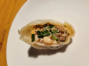 利用逛烘焙展的機會,趁隙把南港食物情報出清一些。這家「餡老滿」就在南港展覽館一館對面,走路過來挺方便。 店家主打手工水餃及宮廷料理,原抄得老滿火鍋、餃子和麵食推薦,但對熱炒類也有興趣,只好先放棄火鍋。入座會詢問是否需要茶水,茶水需另付茶資。賽螃蟹 220元 老滿餃子 140元 牛尖椒餃子 180元 這裡的賽螃蟹稍油,口感和滋味吃來像是滑蛋料理(但熟度再高些),得加上一旁的鹹酸醬料提味層次較豐富。賽螃蟹初嚐是在板橋的春野新派川菜,表現比這裡精彩。 餃子皮帶點厚度,勁道十足,內餡會爆汁。老滿餡子餡料為韭菜、蝦仁、雞蛋和豬肉,口感豐富,滋味主體來自醬味的豬絞肉。嚐試搭配桌上的油潑辣子品嚐,可惜僅有些辣度,香氣一般。 牛尖椒餃子標註了「辣」,實際上沒什麼辣感,味道甚至比老滿餃子再單調些。老北京炸醬麵 130元 北京驢打滾 120元 炸醬麵麵條為細麵,帶咬勁。炸醬上桌前是麵條分開,或許是要讓客人自酌鹹淡,個人是覺得全下也沒什麼問題。不過炸醬重於豆瓣醬的鹹,豬肉的香氣略嫌不足。 驢打滾吃來軟帶黏,Q彈感沒想像明顯。紅豆餡薄,滋味不重,表面黃豆粉的味道反倒顯著。 一路吃來對爆汁水餃印象較深,推測餡餅類應可一試。…查看更多