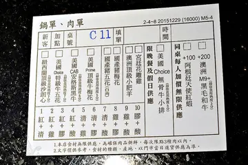 《馬辣鴛鴦火鍋專賣》這火鍋吃到飽品牌相信台北人都不會感到陌生,第一間門市「公館店」在2006年開幕,至今品牌已邁入第10周年。因為家人相當喜愛馬辣,所以長期都有感受到食材的進步,本月更是直接將菜單改版,號稱「地表最強菜單」的火鍋吃到飽菜單居然連澳洲和牛、天使紅蝦、馬卡龍、72%生巧克力等食材都出現了!!! 這次來到了2016年1月才剛正式開幕的西門町「漢口店」,相距不遠的萬年大樓對面還有間「西門店」,後者除了肉品以外的食材是自助取用的,新的這邊則是點餐送餐的用餐方式~ ▲ 天花板掛了許多天燈造型的燈 店內空間相當的大,餐廳中瀰漫著濃濃的中國風,古色古香的環境相當討喜,不只適合口味較為中式的火鍋,店內的國際觀光客相當多,對這樣有特色的裝潢應該也會有不錯的觀感吧~ MENU 菜單及最新價格 (點圖可放大) 這次肉品的部分有很大幅度的升級,鴛鴦鍋可以選擇的湯頭種類也變得更加豐富了~ 點餐的方式是直接劃單,將單子交給服務人員就可以了! 午晚餐都有供應的肉品種類變得豐富許多,晚餐及假日更多了美國Choice無骨牛小排,同桌每人加價NT. 200還可以無限享用澳洲M9+黑毛和牛,如果愛吃蝦子的話也可以考慮加NT. 100就能有阿根廷天使紅蝦吃到飽!!! 其他的食材種類同樣也很豐富,居然品項能夠多到需要用三種單子來列出表格供人點選~~~ 自助調味料區的醬料種類也很豐富,一旁也放了些小工具方便特定食材的食用,邊邊有個洗手台,用餐中間需要洗手的話就也不用專程跑到洗手間,到中間的自助吧檯區就可以將手洗乾淨了(每桌也都有放好幾份濕紙巾)。 看見白飯的部分時,倒是有點吃驚~~ 米飯特別標明說選用的是台梗8號米,一旁搭配的醬料居然還是咖哩牛肉!? 吃火鍋吃到飽的同時還能吃牛肉咖哩飯,真的太特別了!!! 飲料吧 除了飲料機、咖啡機及冰箱中的飲品,一旁還有花草茶、天仁茗茶、以及英國TWININGS唐寧的茶包! 這次在點餐送餐的幾間門市中,飲料的部分也有其他的特別升級品項,多了新鮮果汁及紅酒、白酒,年輕人特愛的台灣生啤酒當然也有~ ※ 未成年請勿飲酒、請勿酒駕 在放滿汽水的冰箱中還發現了這日本北海道品牌SAPPORO的啤酒,喝起來完全沒有苦味,平時不愛啤酒的我也喝光這瓶了呢! 湯頭的部分,這次選擇的是紅湯的「馬辣麻辣鍋」+「宮廷花雕雞」! 麻辣鍋以多種香料熬煮調味,辣而不刺的甘甜醇香口味這麼多年來擄獲了不少人的胃,也確實很適合涮煮肉片、滷味、內臟等食材~ 麻辣湯裡的鴨血及豆腐兩種湯底,都是可以再請服務人員添加的,兩種都滿好吃的喲! 宮廷花雕雞鍋會附上以中藥材醃製過的去骨雞腿肉,肉單中也可以續點醃製過的雞腿肉,如果再點個王子麵來配,就可以化身為最近超火紅的人氣花雕雞泡麵了!!! 接著來看吃到飽火鍋很重要的一個重點 肉! 首先是美國USDA標章的「美國Prime頂級牛梅花」!!! 美國農業推廣部的牛肉分級中,最高級的Prime等級牛肉,每頭牛僅有大約3%符合,馬辣現在是無論午晚餐都有供應! 肉單上寫建議5分熟,這一種肉真的很強烈建議不要煮超過5分熟度,別丟進鍋子就忽略了它,口感會差很多呦~~~ 「美國Choice特級牛五花」雖然不是強打項目,也看得出升級~ 油花分布比以前所供應的「小肥牛」還要更密一些,吃起來出乎意料的不覺得肥呢! 接著是晚餐時段及假日才吃得到的「美國Choice無骨牛小排」!!! 油花分布如大理石一般,油脂豐富,肉質細緻,現在在馬辣終於也吃得到我平時最喜歡吃的部位了~ 不過馬辣這次的升級程度真的有點誇張,多了牛小排並不算稀奇,現在居然還可以多花200就有澳洲和牛無限吃!? 究竟這「澳洲M9+黑毛和牛」的肉質如何,是這次用餐最期待,也最害怕受傷害的部分~ 肉盤一上桌,懸著的心終於穩了下來,這品質真的超出我的預期了!!!!! 好的食材確實不用太多著墨,吃一口就知道~ 前面一路吃過來,原本覺得牛小排的軟嫩細緻果然還是我的最愛,結果吃了一片和牛之後就回不去了~~ 後面再加點的和牛油花同樣美麗,稍微涮一下湯就可以吃了,肉單上的建議熟度是3分,不過即使未及時從鍋中取出,全熟的軟嫩、細緻程度仍舊超越其他幾種肉,不只吃得滿意,更是超級滿足~~ 澳洲和牛不只在高級餐廳出現,部分高級進口超市也能見到,但售價都是相當不斐的,即使是在超市,這加價無限享用的金額也買不了這一盤的份量,當下傳了肉的照片給親友共賞,得到的答覆也都是「超值」。 「阿根廷天使紅蝦」排在一起時大小看似普通,一旁的番茄正好可以做為比例尺,其實每一隻蝦都很大呢! 蝦子的新鮮度很好,鮮甜度也相當高,愛吃蝦的話可以考慮看看是否要做這個加價升級~ 其他的食材也都相當優,蚵仔是爸爸每次來馬辣都要吃上好幾份的海鮮食材,黑海參及基隆三記魚餃也都是家人的愛~ ▲ 基隆三記魚餃 / 新竹進益貢丸 / 布袋鮮蚵 / 爆漿蛤蜊 / 基隆透抽 ▼ 萬里三點蟹 / 手打花枝 / 手打蝦丸 / 滷三寶 ▼ 老油條 / 水蓮 / 自製排骨酥 ▼ 綜合菇 (共有兩種組合的綜合菇) 接近尾聲時一定要吃得冰淇淋也悄悄的升級了~ 原本兩種品牌各有8種口味,現在 Häagen-Dazs 哈根達斯增為16種口味,Movenpick 莫凡比則是維持原本的8種口味。 飯後水果也有好種選擇,這天有紅西瓜、蓮霧、番茄、百香果、芭樂、鳳梨等台灣本土水果,一旁還有店家自製的冰糖銀耳、奶酪等甜點。 最受歡迎的甜點則