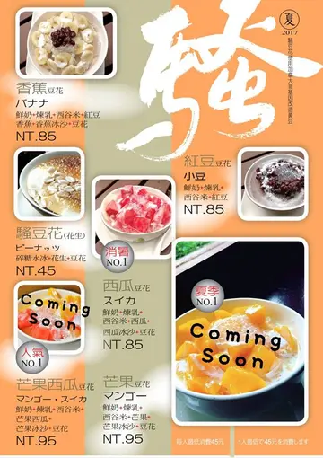 騷豆花.越娘河粉是大安區人氣長紅的知名甜點冰品店,甚至揚名日本,聽說今年七月還在東京新宿開了海外分店,可說是台灣之光啊~~怎麼能漏勾呢?!騷豆花.越娘河粉在台北有兩間店,都位於東區;一店在延吉街、旗艦店則在敦化南路一段,這次造訪的是旗艦店。騷豆花敦南旗艦店距離捷運忠孝復興站很近,從3號出口步行到店不用5分鐘,想一嚐東區好吃豆花並非難事喔!Nini小小評>>水果擺好擺滿,配上豆花香甜好吃、沁涼又消暑。室內以斑駁磚泥牆呈現老宅風情,等候區以客家大紅花布和紅燈籠妝點。飲用水和醬料皆採自助方式。 騷豆花菜單menu騷豆花以豆花聞名,店內另有販賣越式小吃料理。來騷豆花就是要點個水果豆花來騷一下味蕾啊!水果豆花按季節推出不同口味。夏季有西瓜豆花、芒果豆花,也有雙拼;冬季則是女孩兒為之瘋狂的草莓豆花啦!另外聽說香蕉豆花似乎不錯,光要選口味就覺得難以割捨了啊~~ ▼牛肉乾拌河粉 $150乾拌河粉會附上一碗牛肉湯河的湯和香茅特調醬汁,特調醬汁可以隨喜好加入多寡。整體調味比在越南當地吃的再輕淡一點,不過還是挺有味道的。基本上,南越與北越口味就不大相同,所以很難說道不道地,就看合不合自己胃口而已。河粉有Q,微辛微酸,附的熱湯滿好喝的。▼西瓜豆花$85 / 芒果豆花$95怕吃不過癮,所以沒有點雙拼,直接各點一碗吃到爽XDD尼坎坎~~黃澄澄的枋山愛文芒果好誘人啊……(芒果控現形)舀一大匙,芒果、豆花、西谷米通通入口,咀嚼鮮滑的芒果時,咕溜的豆花就在口中滑來滑去,加上軟Q的西谷米,超級享受啊!接著一陣香濃芒果味沁涼襲來,哇~~才知道豆花裡面還有芒果冰沙耶!後來拿了菜單仔細看,方知芒果豆花包含了鮮奶、煉乳、西谷米、芒果、芒果冰沙、豆花,可說是十足豐盛的一碗冰甜品。煉乳加得恰到好處,不會有甜膩感,要說唯一的缺點大概就是芒果偏酸,可能當時是芒果初產,還沒到盛產期吧?!鮮紅欲滴的西瓜很招人口水!和芒果豆花一樣,有鮮奶、煉乳、西谷米、西瓜、西瓜冰沙、豆花,相較芒果來說,西瓜則十分香甜好吃,大大一口有滿滿的新鮮西瓜與透心涼的西瓜冰沙,還有豆花和西谷米,相當消暑又超級滿足啊!(拇指)老實說店家用水果冰沙增加甜度真的很聰明,若是使用一般糖水,嚐起來就會遜色許多,一來會部分掩蓋西瓜的香甜(都是糖水味),二來會覺得西瓜是西瓜、豆花是豆花,只是把西瓜丟進豆花裡而已,味道上可能會貌合神離。除了用冰沙外,還加了鮮奶一起當作湯水,根本就是芒果牛奶冰沙和西瓜牛奶冰沙嘛!完全絕配的東西。 東區好吃豆花冰品店推薦─騷豆花因為芒果偏酸,兩者相比,個人喜歡西瓜多一點,但都覺得不錯。水果的味道本就香甜馥郁,因此豆香味與炭香味相對之下比較吃不出來,但整體來說水果豆花是好吃的,現在Nini已經開始期待冬天的草莓豆花囉!…Read More
