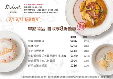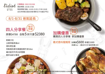 四人分享餐優惠再延長至8月底,父親節訂一份回家跟爸爸吃大餐(內含優惠DM)-華泰王子飯店L’IDIO