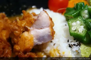 老k家附近新開了一家咖哩店 門口還掛著紅鳳梨呢查了一下才知道之前是開在永春站附近的去年底才搬過來也才開了半個月左右這家原來是賣羊肉麵的去年夏天收了之後就空在那裏終於有新店了 開門沒多久就來了還沒什麼人 主打就是咖哩不吃咖哩也有丼飯可以選還有不少炸物可以單點老K選了日式炸雞咖哩(160元)又單點了一個手打豚肉漢堡排(110元)其實本來是想點手打豚肉漢堡排咖哩加日式炸雞塊但算了一下發現這樣貴10元還好老K對數字很敏感呀XD 有免費的冰蜜茶跟熱麥茶可以喝老K倒了一杯冰蜜茶這也太甜了比較適合愛喝甜的朋友 日式炸雞咖哩(160元)這樣160元老K覺得不貴四大塊的炸雞配菜有秋葵、小蕃茄、生菜、玉米、炸地瓜跟炸薯塊很豐富呀炸地瓜跟炸薯塊都不錯吃附的紫菜味噌湯也不錯喝剛好解炸物的油膩 他們家的咖哩沒有那麼濃吃起來有點帶奶帶點酸的咖哩感覺有點椰奶的感覺因為老K很怕奶所以這算是老K接受的極限XD所以咖哩老K沒那麼愛 炸雞老K就蠻喜歡的外酥又香但不會太鹹 內多汁又嫩用的是雞腿肉他們家炸物很有水準呢 手打豚肉漢堡排(110元) 再來試試單點的手打豚肉漢堡排看起來就蠻誘人的 一切開很多汁呀看葉子上面都是肉汁就知道了外面應該是炸過的帶點酥脆裏面很多汁帶點豬肉味怎麼說呢很順口但不會印象深刻日式炸雞比較合口味呀老K還是比較喜歡牛肉漢堡排 K的小叮嚀:雖然說他家咖哩沒有很合老K的口味 但炸雞真的好吃 如果有再來用餐應該會選丼飯吧 價格來說蠻平價的 內湖的朋友又有好選擇了 介紹給大家…查看更多