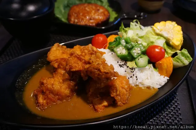 老k家附近新開了一家咖哩店 門口還掛著紅鳳梨呢查了一下才知道之前是開在永春站附近的去年底才搬過來也才開了半個月左右這家原來是賣羊肉麵的去年夏天收了之後就空在那裏終於有新店了 開門沒多久就來了還沒什麼人 主打就是咖哩不吃咖哩也有丼飯可以選還有不少炸物可以單點老K選了日式炸雞咖哩(160元)又單點了一個手打豚肉漢堡排(110元)其實本來是想點手打豚肉漢堡排咖哩加日式炸雞塊但算了一下發現這樣貴10元還好老K對數字很敏感呀XD 有免費的冰蜜茶跟熱麥茶可以喝老K倒了一杯冰蜜茶這也太甜了比較適合愛喝甜的朋友 日式炸雞咖哩(160元)這樣160元老K覺得不貴四大塊的炸雞配菜有秋葵、小蕃茄、生菜、玉米、炸地瓜跟炸薯塊很豐富呀炸地瓜跟炸薯塊都不錯吃附的紫菜味噌湯也不錯喝剛好解炸物的油膩 他們家的咖哩沒有那麼濃吃起來有點帶奶帶點酸的咖哩感覺有點椰奶的感覺因為老K很怕奶所以這算是老K接受的極限XD所以咖哩老K沒那麼愛 炸雞老K就蠻喜歡的外酥又香但不會太鹹 內多汁又嫩用的是雞腿肉他們家炸物很有水準呢 手打豚肉漢堡排(110元) 再來試試單點的手打豚肉漢堡排看起來就蠻誘人的 一切開很多汁呀看葉子上面都是肉汁就知道了外面應該是炸過的帶點酥脆裏面很多汁帶點豬肉味怎麼說呢很順口但不會印象深刻日式炸雞比較合口味呀老K還是比較喜歡牛肉漢堡排 K的小叮嚀:雖然說他家咖哩沒有很合老K的口味 但炸雞真的好吃 如果有再來用餐應該會選丼飯吧 價格來說蠻平價的 內湖的朋友又有好選擇了 介紹給大家…查看更多