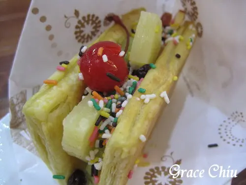近期有不少連鎖飲食店都還蠻積極的進駐大賣場美食街,前陣子逛桂林路家樂福發現某櫃位開始重新裝潢中(準備改為魏姐包心粉圓經營),裝潢好經過看到他們整體透明式開放空間的設計還蠻讓人耳目一新. 外側有這麼一處開放式廚房設計,我還以為是另外的廚房示範樣品空間或是賣廚房用品的櫃位咧~ 想說魏姐包心粉圓賣的就是粉圓商品,所以看到櫃位開幕也沒有特別留意,但這天仔細看了一下,瞄到寫著有桂林店限定獨賣的輕食“脆堡派”~每份55元,有四種口味(素香鬆.果香.鮪魚等),點了果香脆堡派來試試. 因為是現場製作所以需時等待,製作場所就在我原本以為是示範廚房樣品的地方,哈~不過等候時間還蠻久的,那時只有我一個客人,從點餐到餐點上桌等了將近15分鐘的時間. 果香脆派堡,外層是厚厚的酥派皮,裡頭加的水果有薄切片蘋果.奇異果.罐頭鳯梨片.最上頭有顆罐頭櫻桃,其中還加了一些葡萄乾跟灑了些彩色巧克力米,酥皮的層層堆疊厚實口感還不錯,整體滋味清爽,雖不算很特別,但在夏天偶爾吃一份這樣的輕食也還可以啦.本文全部文字內容.照片皆為筆者個人拍攝撰寫之著作,未經同意請勿盜用或盜轉為各類商業營利行為…查看更多