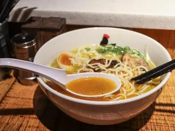 小小小拉麵控這次來吃雞湯拉麵鳥人拉麵(Totto Ramen)。台北雞湯拉麵較有名氣的除了鳥人外、當然還有雞二、雞吉君、重熙老麵等,都是排隊名店,但我都沒吃過(羞)。第一次吃雞湯拉麵是麵Sato的淡麗系雞貝湯,雙重湯頭濃郁中卻又帶著細膩,蠻喜歡的。第二次的雞湯拉麵是麵屋一燈,吃完完全嚇死XDDDD,我知道麵屋一燈有很多愛好者但我就是真心不喜歡!經過麵屋一燈的震撼教育我一直對雞湯拉麵興趣缺缺,直到遇見鳥人拉麵。鳥人拉麵與眾多日本拉麵不同,它是源自於紐約。上網看許多人說吃不慣,但很對我的味口。鳥人拉麵台灣店的地點位在市民大道旁,旁邊就是橫濱家系大和家店內較小,用餐時間還是會排隊。比較令人詬病的,就是多了服務費吧!這大概是拉麵愛好者的地雷,說真的被服務到的地方極少,加服付費是有些變相加價了。 鳥人辛白湯拉麵 $200+蛋 $30怕雞湯容易膩因此點了點了鳥人辛白湯拉麵,期待辛辣味可以多些層次。整碗配置看起來令人食慾大開,大量的蔥花、炙燒過的叉燒、海苔,辣醬則是加在旁邊。叉燒則可以選擇豬肉還是雞肉,我對舒肥雞肉退避三舍,毫不猶豫選擇豬叉燒。 雞白湯:湯頭油脂不算多,滑順鮮甜,溫潤而融洽,充滿著雞鮮味。麵屋一燈湯頭最令我受不了的大概就是那股太強烈的動物氣味,第一口是濃郁味美但實在很不耐喝,膩感在沒喝幾口後就馬上竄起。鳥人拉麵雖然雞味鮮濃、但帶有適度的清香並且比較圓潤,很神奇的那股預期中的膩感、腥味竟然完全沒有出現。有人說鹹度太高,我怎麼一點都不覺得~~我很愛這湯頭~ 辣醬的辣度相當高,混入後湯色轉變,很特別的是他的辣中帶甜、帶麻,還有濃郁香氣,跟原本的雞白湯頭會差異很大,有點蓋掉雞湯香氣,建議吃到一半再混入,可品嘗不同層次的風味。炙烤過的豬肉叉燒帶有焦香,雖厚但肥嫩,我喜歡麵條是直細麵,偏硬,我自己喜歡硬麵,覺得蠻適中的。總體而言鳥人拉麵我會想吃第二次的雞湯拉麵,但我想雞吉君一定更強,只是位在內湖實在太逼人,只能有緣再見了! …查看更多