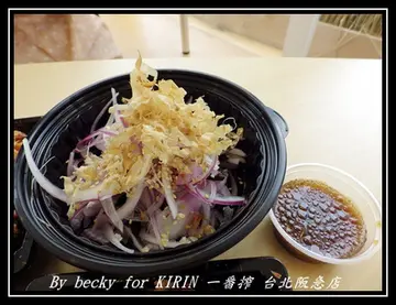 今年的夏天有這個機會知道了KIRIN一番搾啤酒,因之前有聽朋友說過,但卻沒機會嚐試,而這次的活動,因夏日限定關係只到9/26,所以要趁這個機會來試試。***未成年請勿飲酒***這次期間限定是在阪急百貨二樓的音樂花房內,上到二樓就可以看到裝潢不錯的店面。門口還擺著KIRIN一番搾啤酒大啤酒罐,當然也有菜單~除了二種啤酒冰沙外,也有下酒小菜。進到店內到處可以看到KIRIN的logo,還有票選活動及娃娃,而旁邊就是製造冰沙啤酒的機器。所謂的「一番搾製法」就是僅使用在糖化過後的麥糊,在過濾的程序中,最先流出的第一道麥汁來釀造啤酒。如此可以將麥芽原有的芳香美味,原始自然地呈現出來,所以稱做為「一番搾製法」。與麥芽100%的結合,終於達到了「口感清爽且令人充分滿足的美味」的完美境界。「麒麟一番搾啤酒」只使用第一道釀造,單寧成分較少,口感更加清爽順口。麒麟獨家專業技術,以「凍結攪拌技術」製程-5度c冰沙泡沫,泡沫封蓋與外界溫度隔絕,保冰30分鐘隨時體驗最冰涼的冰沙口感。(取自愛評)而店內的坐位也不少,也有室外的,不過我們是中午到店,所以不太適合去做日光浴。而在牆上有著原料、製程的詳細介紹,連電視都播放著介紹,想讓大家更了解「KIRIN麒麟」的製造過程。而櫃台處有著小書籤,可以讓大家自行拿取做紀念一番搾啤酒冰沙($149)、一番搾黑啤酒冰沙($149)***未成年請勿飲酒***啤酒冰沙的下層就是麒麟一番搾啤酒,上頭是泡沫打成的冰沙圈,泡沫的外層很細膩,而裡頭帶著綿密及冰涼的口感,而啤酒口味有著淡淡的麥芽香,黑啤酒的口味則是較有苦味,兩種喝起來都很透涼心扉,就要看個人喜歡淡淡的香氣或者是濃醇的苦味。金黃帶皮脆薯($79)它是帶皮的馬鈴薯塊,外表炸的金黃,吃起來外酥內軟,上頭灑的是芥末胡椒鹽,入口後帶著些許的嗆味,很適合當配菜。酥脆鮮味蝦排($109)兩塊蝦排從外表看起來就很酥脆,上頭有灑著黑胡椒,入口帶點微香,只是吃起來沒什麼蝦子味道,覺得有花枝的香氣,附帶的醬汁是泰式酸辣醬,搭配著吃,帶些微辣、微酸甜口感,咀嚼很有嚼勁。特製海風中卷($109)這個中卷吃起來很酥脆,非常新鮮,外皮炸的金黃,外酥內紮實,咀嚼起來很Q彈,上頭有灑著辣椒粉,讓口味更加重,配上鹹的美奶滋,清爽中帶著濃郁的香氣。輕盈裙帶沙拉($79)這個沙拉主要是洋蔥與海帶芽搭配,而醬汁是和風醬,內容物有著:柴魚片、洋蔥、海帶芽;倒入和風醬,裡頭有著白芝麻,提升香氣,攪拌後吃了一口,非常清爽,洋蔥並沒有很辛辣味,倒是略帶甜味,吃完炸物後再吃沙拉,可以去除一些乾澀口感。整體來說,這裡是個很適合下班後的小酌閒聊,或者是逛街後想找地方休息,這裡是個不錯的場所,且味道也很不錯,在這裡可以放鬆自己也是個不錯的事!查看更多