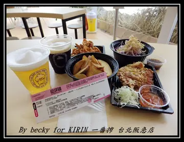 位於阪急百貨旁2樓露台當天過去時雖然下著大雨,但冒著雨前來喝兩杯的人也不少,大家大概跟我一樣也是要來躲雨的吧!? 店內到處都可看到有關啤酒的擺設 可愛的一番榨公仔 根據麒麟網頁介紹,這是麒麟獨家專業技術,以「凍結攪拌技術」製程-5度c冰沙泡沫,泡沫封蓋與外界溫度隔絕,保冰30分鐘隨時體驗最冰涼的冰沙口感,如此高科技技術,讓人躍躍欲試! 店內整排滿杯冰沙啤酒排排站看來好壯觀!氣氛感覺很不錯! 啤酒的好搭檔:下酒好菜! 有低消99元限制,禁帶外食。 好天氣時補拍的,坐在這裡view還真不錯!再來杯透心涼的冰沙啤酒和美味小菜,何等愜意!  體驗的冰沙啤酒其實也不算小杯,每杯都是滿到快溢出的程度!上頭滿滿的冰沙,光眼睛看就消了大半的暑意,黑麥啤酒喝來啤酒味十分濃郁,但感覺好像没有什麼酒精,2杯下肚也不覺得有喝酒的感覺,走直線一樣没問題!! 帶皮薯塊偏鬆軟而少了薯條的脆度,很適合拿來當下酒菜! 炸中卷也是配啤酒的良伴,酥酥香香,沾甜甜的美奶滋更是好吃!個人更是推薦! ※ 以上為個人食用經驗, 因口味是很主觀的, 所遇狀況也不同, 僅供參考!!查看更多