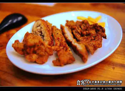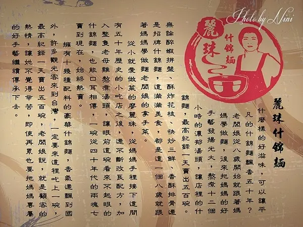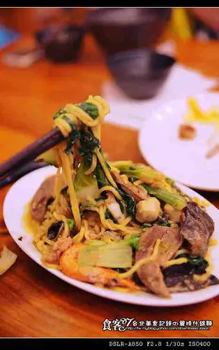 這間麗珠什錦麵名氣不小,很久之前就看過電視報導過生意不錯,上次吃過北投的張吳記什錦麵印象不錯,不過距離很遠,相較之下,萬華離我們近多了,就特別找了一天傍晚時間來朝聖一下。麗珠位於巷子裏,附近的巷弄環境都蠻相似,經過這附近時要張大眼睛找一下,招牌並不大,不要不小心就沒發現囉!門口處店家提醒煮麵需要30分鐘,怕客人等太久特別先說明。整體有裝潢過,木質的桌子和板凳,走咖啡色系有復古懷舊的FU,上面用了很多燈泡照亮,是照明工具也是裝飾蠻特別的。出菜的地方在中間的櫥櫃裹面,有用心設計。 小菜整齊擺放在櫥窗內,讓客人自行挑選,怕點太多吃不完就沒點了。餐具和酌料放在後面,飲料放在冰箱內,都是自取的。菜單除了招牌麵類,也有飯、湯、米粉,還有熱炒類,選擇性很多。什錦湯麵,我們可是為了這一碗而來,果然等了差不多30分鐘左右,炒菜上桌都快吃完麵才來。看起來很豐富,配料不少,有看到蝦、豬肝、花枝、肉絲、蚵仔、魚丸、木耳和高麗菜,湯頭看了有點油喝起來卻還好,微甘甜的湯就像是所有食材的精華所在,搭配油麵條,整碗有一定水準。 單點排骨,看到很多人桌上都有,索性也點來嚐嚐。上桌時有點嚇到,還蠻大一塊,除了大塊以外也有相當厚度,炸過後皮薄酥脆吃起來相當紮實,附上少許辣蘿蔔搭配,微辣吃起來更添口感,這應該比一般便當店的排骨大。 炸蚵仔酥,店家推薦的菜,也不小盤,每顆蚵仔肥大炸的酥脆口感滿足,只是吃到後面有點吃不完,一盤雖然乍聽之下200元不算便宜,但是份量讓人滿意。 炒青菜,這天的是菠菜,吃完炸的來點青菜平衡一下,口味就像一般家裡炒的。 吃完共450元,兩人吃價格略高,不過份量確實不少,炒菜類種類多,單價也偏高一點,人多來吃會比較划算,也可以吃到較多道菜,看到隔壁桌不少人點炸軟絲,小菜看起來也不錯的感覺,下次有機會再來試試。…查看更多