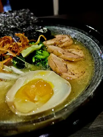 個人評價:會考慮再來這間店是之前來覓食時經過看到快要開幕, 當時看來要關門了沒進去第二次來因為太晚到, 關門第三次總算吃到進門後就有很日式的餐卷機, 而是且是很新式的, 都按完後再一次按結帳, 拿給店員即可 桌上有兩小罐, 一罐是七味一罐是蒜酥 ●雞白鹽味拉麵 一碗190 , 有三片雞叉燒,一個半熟蛋,很令我個人滿意的是沒有我討厭的豆芽 湯頭略鹹, 雞湯味重, 屬於可以喝的麵湯, 喝多了一點會發現湯其實蠻濃厚的麵條是一般的黃拉麵, 但不會太粗整體的麵量偏少, 如果是像日本喜歡先喝酒再去吃麵的, 這份量ok , 不然即使小鳥胃如我, 單吃這碗麵都嫌少些可以加點大碗或其他小菜 叉燒炙燒過, 吃來不錯, 有點後悔沒加點40 元再多4塊雞叉燒 後來發現加點蒜酥湯頭會更有味 ●北海道可樂餅可樂餅上面用蕃茄醬畫了很可愛的笑臉有點覺得這是給小朋友吃的可樂餅馬鈴薯算扎實●總評還算滿意的拉麵店, 口味符合我的需求, 雖為鹽味拉麵, 但湯頭鹹度都還可以但我下次去吃應該會點大碗的......…查看更多