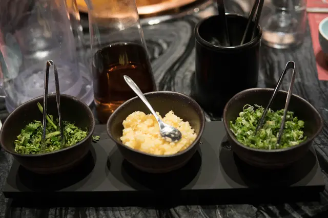 信義區,信義微風45F【麻辣45】是「乾杯集團」全新打造的「重慶式麻辣鍋店」標綁全台唯一100%使用「和牛油」還擁有獨特的「九宮格吃法」+「百萬夜景」麻辣鍋控們快約起來吧~ 吃吃吃! ▼首創乾杯集團「辛」殿堂 —【麻辣45】以純和牛油鍋底與重慶原裝進口辛香料,延續流傳百年九宮格、重慶飲食精隨。百種上等食材,加上45樓的城市景色,用重慶火鍋的麻、辣、香,喚醒舌尖上的慾望。 ▼麻辣45,位於45F高樓層,有個看信義區夜景的大平台,猛猛der啊!!求婚、情人節、聖誕節、重要節日來這種景觀餐廳準沒錯!【菜單】以單點的品項為主,提供百種上乘食材,包含高等級日澳和牛、西班牙伊比利豬等,最低只要68元起,就能吃的美味又滿足。我們是假日晚上用餐,每人鍋底費為450元(服務費10%另計)。 九宮格鍋,是店內的亮點之一,▼格子中的溫度不同,可分為「燙」、「煮」、「酣」三種功能,中間格:溫度最高,適合燙毛肚、肉片 十字格:溫度次高,適合煮蔬菜、豆腐 四角格:文火,適合燉骨髓、豬腦等慢煮 10 分鐘以上的食材 只是,九宮格的底部是相通的,麻辣度都一樣,考量之下,蛋寶選擇鴛鴦鍋,能吃到二種湯底的美味! ▼點好餐後,我們的鴛鴦鍋就送上桌了!紅湯:純和牛牛油麻辣鍋底 白湯:和牛清湯 ▼純和牛牛油麻辣鍋底使用100%和牛油,並添加重慶原裝進口45種辛香料熬煮而成,以重慶特產石柱紅椒、燈籠椒、魔鬼椒呈現「辣」度,雲南青花椒的「麻」感,蘊藏和牛油的「香」氣,號稱又麻又香,嗜辣者一定很愛!(但是我覺得麻辣度都沒有很高耶…) ▼和牛清湯喝起來溫順清甜,非常蘇湖,涮蔬菜很合適,單喝也很滋補。 ▼麻油碟將麻油加入適量的香菜、蒜末、蔥花,就是這裡的招牌醬料,沾了之後,可降低食物的溫度、辣度,同時增添香氣。 ▼介紹完鍋底,等餐點送上桌後,就要準備開吃囉! 【和牛牛油肉燥飯】(65元/碗)在享用麻辣鍋前就先趕進度的扒了一碗和牛滷肉飯,天啊!!驚為天人的好吃!!連漬蘿蔔都不是蓋的!肉燥不肥不膩,鹹香油潤,拌著米飯每一口都很精彩! 【日本上等和牛片】(1320元)日本A5和牛,分為兩種不同部位的肉片,油花細緻均勻,讓人好期待! ▼夾起肉片下油鍋,輕輕涮個十秒就美得冒泡了! ▼日本和牛油花比例完美,吃起來就是鮮甜軟嫩,原有的麻辣口感再沾上特製麻油醬料,變得香味獨特又有層次感。 【上等澳洲和牛現切(大份)】(720元)肉片切得大小、厚度都不平均,同一塊肉有薄有厚,很難將肉片均勻的涮至想要的熟度,而且這部位拿來做火鍋感覺也不是很恰當 【五秒牛舌】(280元)這是店內招牌必點品項,只要下鍋涮個5秒,就是最美味的時刻! ▼矮油,牛舌可以喔!!雖然薄薄的,可是吃起來脆脆的,口感很好呢! 【爽脆毛肚】(140元)薄片的毛肚,下紅鍋涮煮後,微辣微脆的口感很獨特,只是蛋寶還是比較喜歡吃有厚實Q彈感的毛肚。 【滷牛筋】(140元)牛筋是蛋寶吃麻辣鍋時的必點選項,吸附麻辣湯汁的牛筋,Q彈柔軟,還帶有香麻感。 ▼吃麻辣鍋的樂趣就是一整桌擺滿之後慢慢下! ▼除了肉品,我們也點了些火鍋配料來品嚐品嚐!鵪鶉蛋(68元) 凍木棉豆腐(68元) 木棉豆腐(68元) 油豆腐(68元) 光豆腐我們就點了3種,經實驗後,沒想到油豆腐在麻辣鍋裡久煮之後是如此入味且美味,木棉豆腐比較像是嫩豆腐的口感,也很好吃! ▼蔬菜類,我們點了以下幾種:香菇(88元) 娃娃菜(88元) 空心菜(88元) ▼什麼都想吃看看-不負責亂點:冬瓜(88元) 筊白筍(88元) 金針菇(88元) 馬鈴薯片(88元) 【蛋寶543】等了好久,蛋寶終於訂到【麻辣45】,只是在這一次的用餐過程中,並沒有讓蛋寶留下深刻的回憶啊~麻辣鍋的滋味雖然不錯,又香又麻的!但是鍋子的加熱時的溫度並不平均,紅白兩鍋中,常常只有紅鍋中間在滾燙,導致在吃的過程中,會有留空等待的時間…讓人吃的很不順暢啊~~而且整頓飯吃完後,蛋寶發現最好吃的居然是「和牛肉燥飯」?!醬香味濃的會讓人想再多吃一碗。但這裡晚餐時段的鍋底費(450元/人),真的有點高,而且鍋底不含鴨血、豆腐,必須另外單點,建議如果想吃的話,選擇在下午或宵夜場,會便宜一半,比較實惠呢!只能說,想嚐鮮在高樓層吃麻辣鍋的話,仍值得試試的~…查看更多