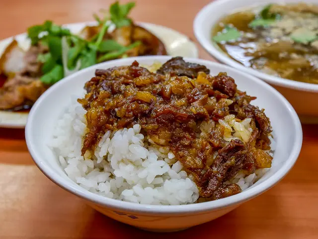 黃記滷肉飯是中山國小、晴光商圈人氣的滷肉飯專賣店,還沒爆紅前我就已經是粉絲,黏黏帶點甜甜的滷肉飯深得我心這幾年黃記滷肉飯已經是日本遊客來台北首選,必吃的人氣滷肉飯,現在環境裝潢又更加舒適,這次已經是三訪了,好味道依舊沒有改變黃記滷肉飯用餐時間真的生意很好,不過現在內用座位越來越多,翻桌率比想像中快很多,想吃滷肉飯其實不用等很久 黃記滷肉飯門口有店員會給我們菜單,可以先挑選想吃的,點完餐先付款,然後就可以等店員叫號入座囉 黃記滷肉飯菜單 黃記滷肉飯很項便當店,可以自己挑選想吃的配菜,任選3種,有些規定例如綠色號碼幾個之類,最後在把配菜的數字寫到點菜單上黃記滷肉飯配菜每天都會更換,選擇相當豐富,都是當季新鮮的菜色,當日烹煮新鮮度一把罩一鍋鍋湯品、滷肉都香氣十足,保持再絕佳的溫度,吃得時候都相當涮嘴,光聞這個香氣就口水直流黃記滷肉飯店內的空間不算寬敞,環境算是擁擠,不過溫度跟空氣蠻流通,不會悶悶的,跟之前比有翻修過滷肉飯滷肉屬於偏肥的滷汁,燉煮得很透徹,滷汁豐富的膠質,跟米飯攪拌均勻,濕潤度十足,嘴巴還會有點黏黏的蹄膀便當便當內用也可以,以前是用盤子裝的,份量不算到非常多,就是一般份量,跟配菜擺在一起,不論一個人用餐或三五好友飽餐一頓都可以現在便當內用都是用碗裝,配菜直接放在飯上頭,可以攪拌一起享用,我還單點了滷白菜、肉羹湯等等搭配享用黃記魯肉飯真的挺不錯,餐點新鮮熱騰騰上桌,一口飯食、一口湯品,怪不得可以吸引這麼多觀光客~💭店家資訊 黃記魯肉飯🏠地址: 台北市中山區中山北路二段183巷28號🚌交通: 捷運中山國小站5分鐘☎️電話: (02)2595-8396⏰時間: 1130-203😪公休: 週一公休💰消費: 現金🥢食記: https://jetpeter.pixnet.net/blog/post/404191253👇👇👇🗺地圖👇👇👇檢視較大的地圖…查看更多