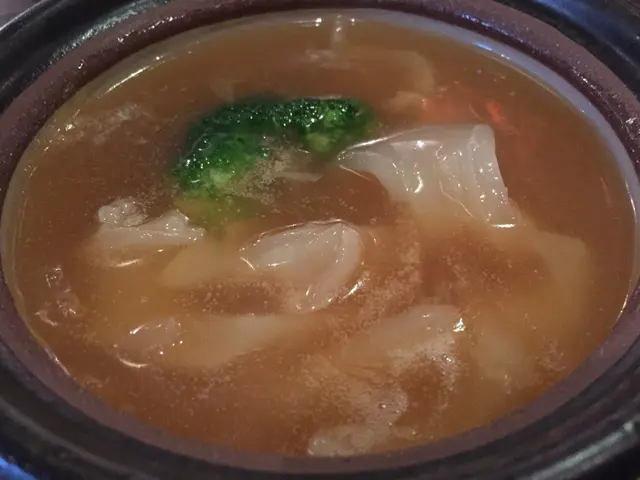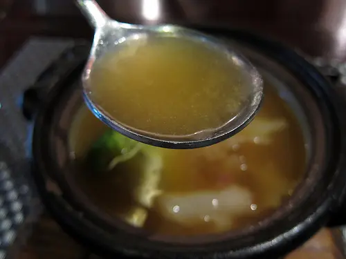 香煎時令鮮魚 ~ 用魚型的盤子上碟,盤子還有個深凹下去的設計,剛好盛住煎魚多餘的油( 吃到這道菜已經很飽了 )雞湯 ~ 喝下暖暖的湯水馬上感受到家的感覺(應該是無味精的